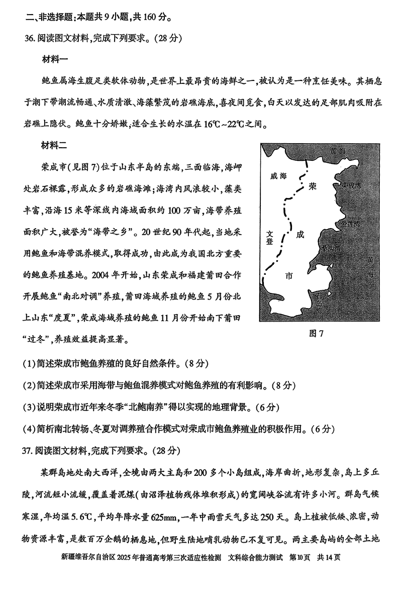 新疆2025届高三下学期第三次适应性检测文综试题及答案