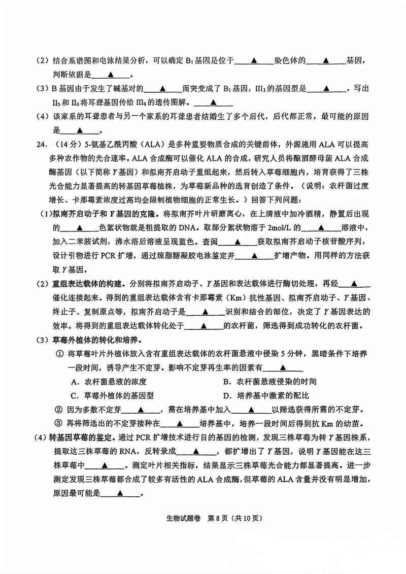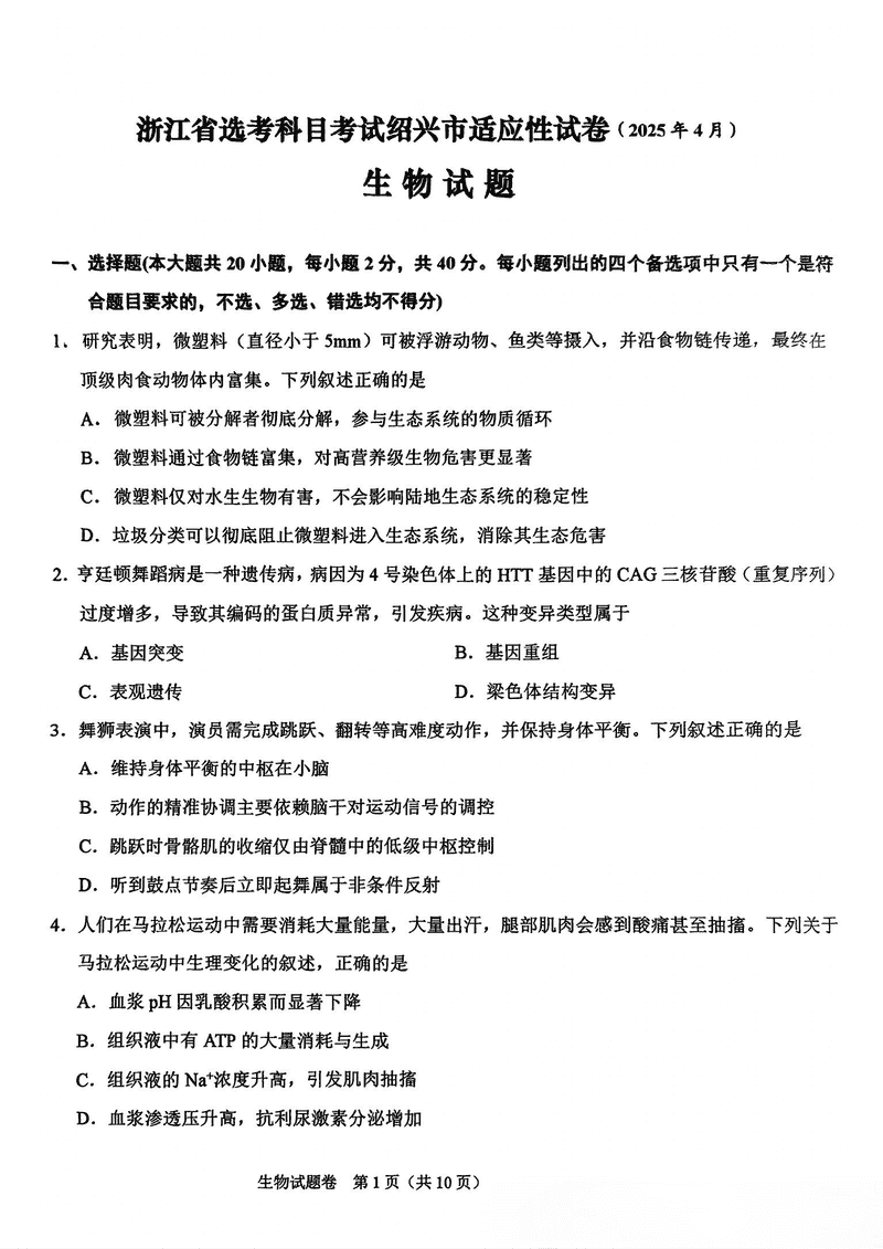 浙江绍兴2025年4月高三二模生物试题及答案 时间:2025-04-12 浙江 理综试题 浙江绍兴2025年4月高三二模生物考试已于近日开考,为方便考生考后及时查看考试情况,查漏补缺、弥补不足,本文整理了试题答案解析相关信息! 汇总:浙江绍兴2025年4月高三二模试题及答案汇总 生物试题及答案解析