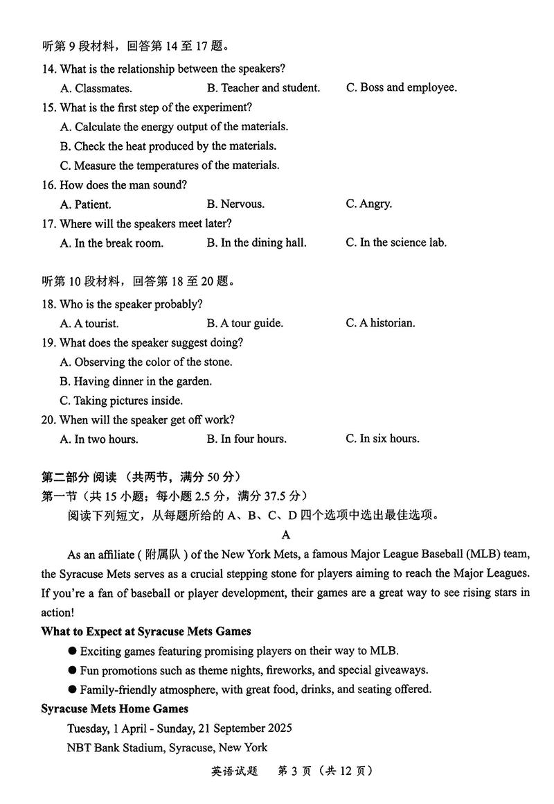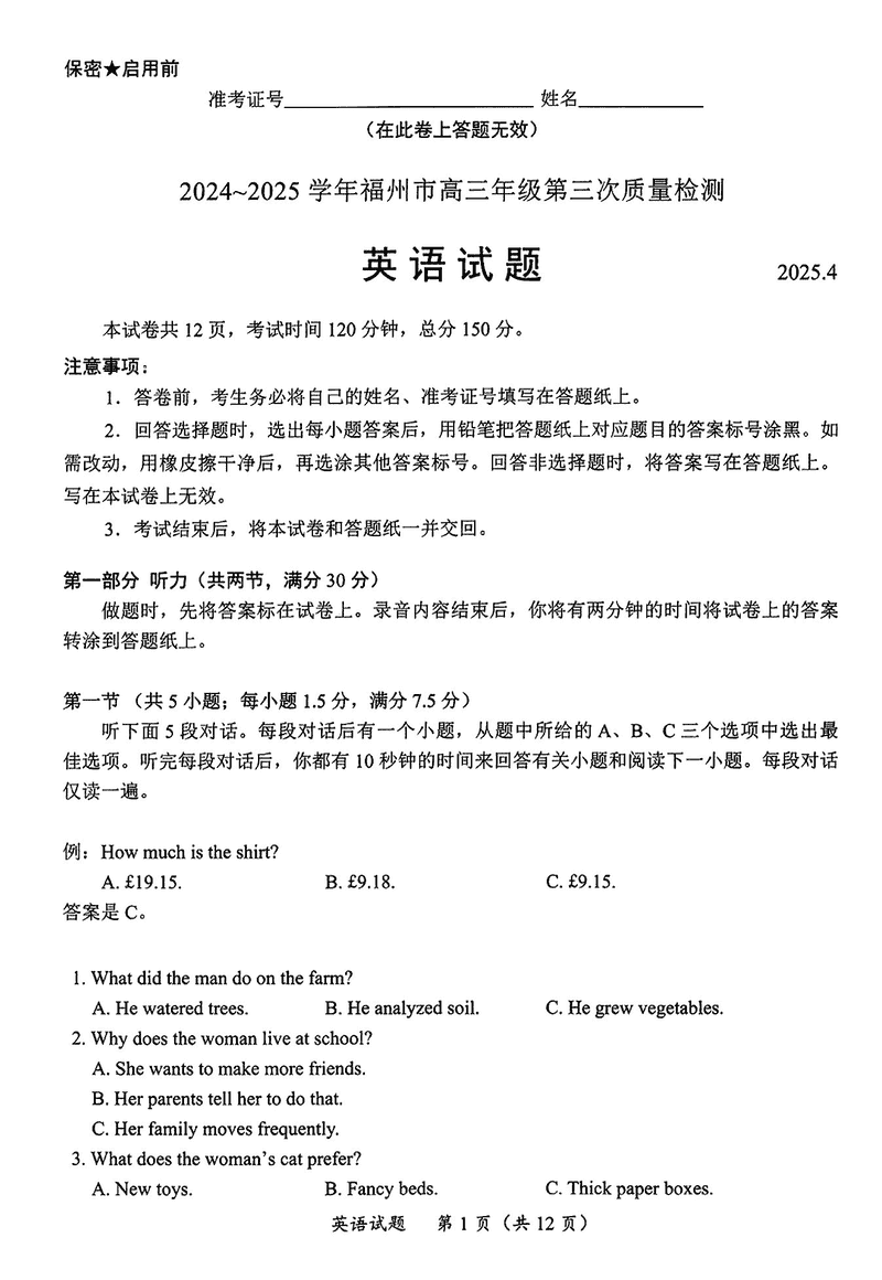 福建2025年4月高三九市联考英语试题及答案 时间:2025-04-12 福建 英语试题 福建2025年4月高三九市联考英语考试已于近日开考,为方便考生考后及时查看考试情况,查漏补缺、弥补不足,本文整理了试题答案解析相关信息! 汇总:福建2025年4月高三九市联考试题及答案汇总 英语试题及答案解析