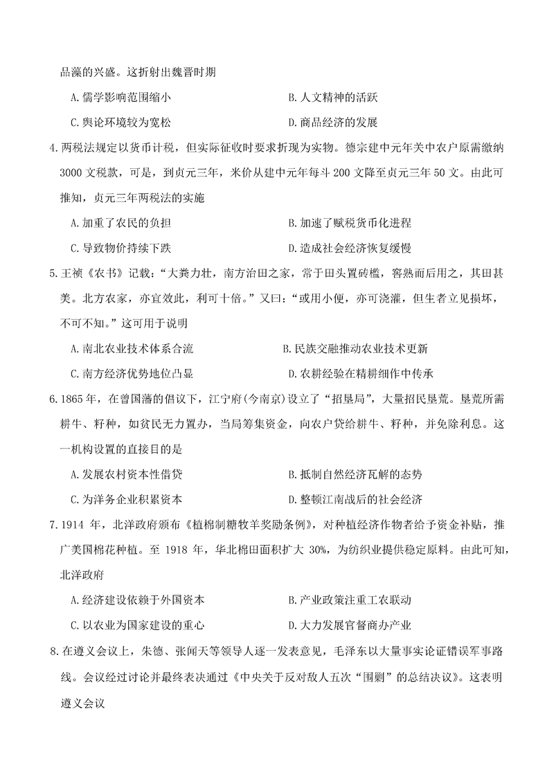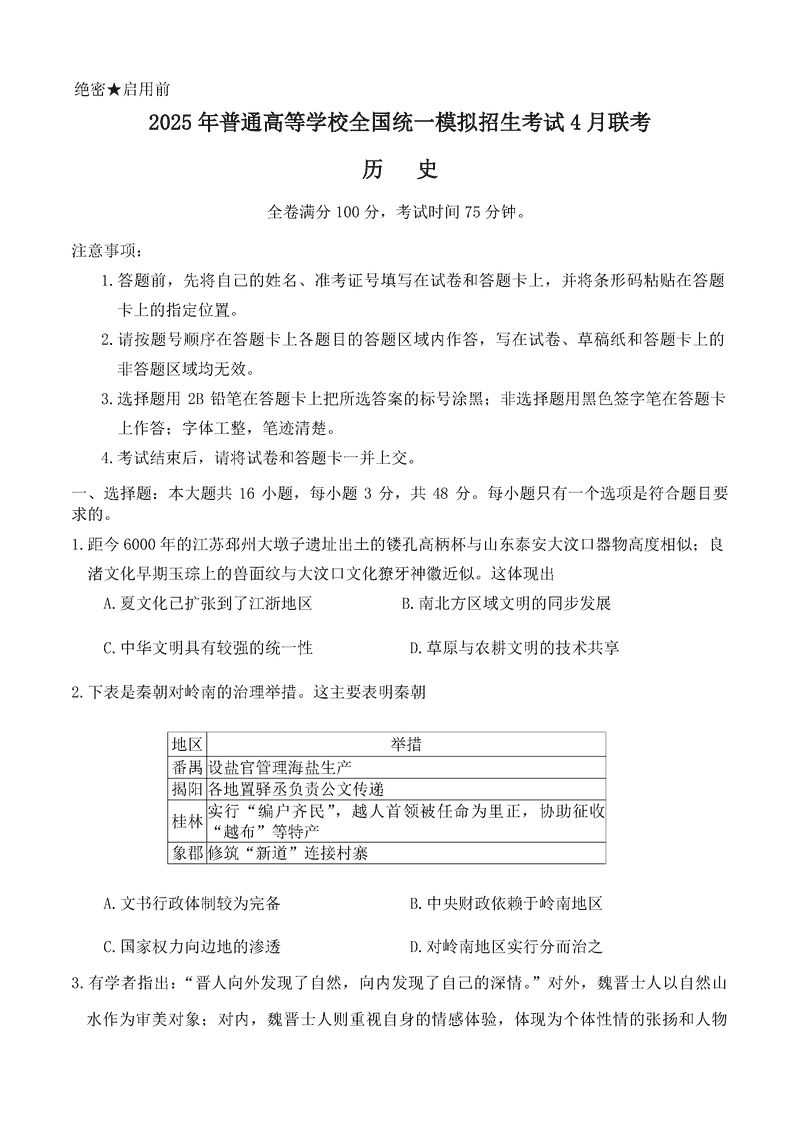 2025届河南省金科新未来联考高三下学期4月模拟预测历史试题及答案