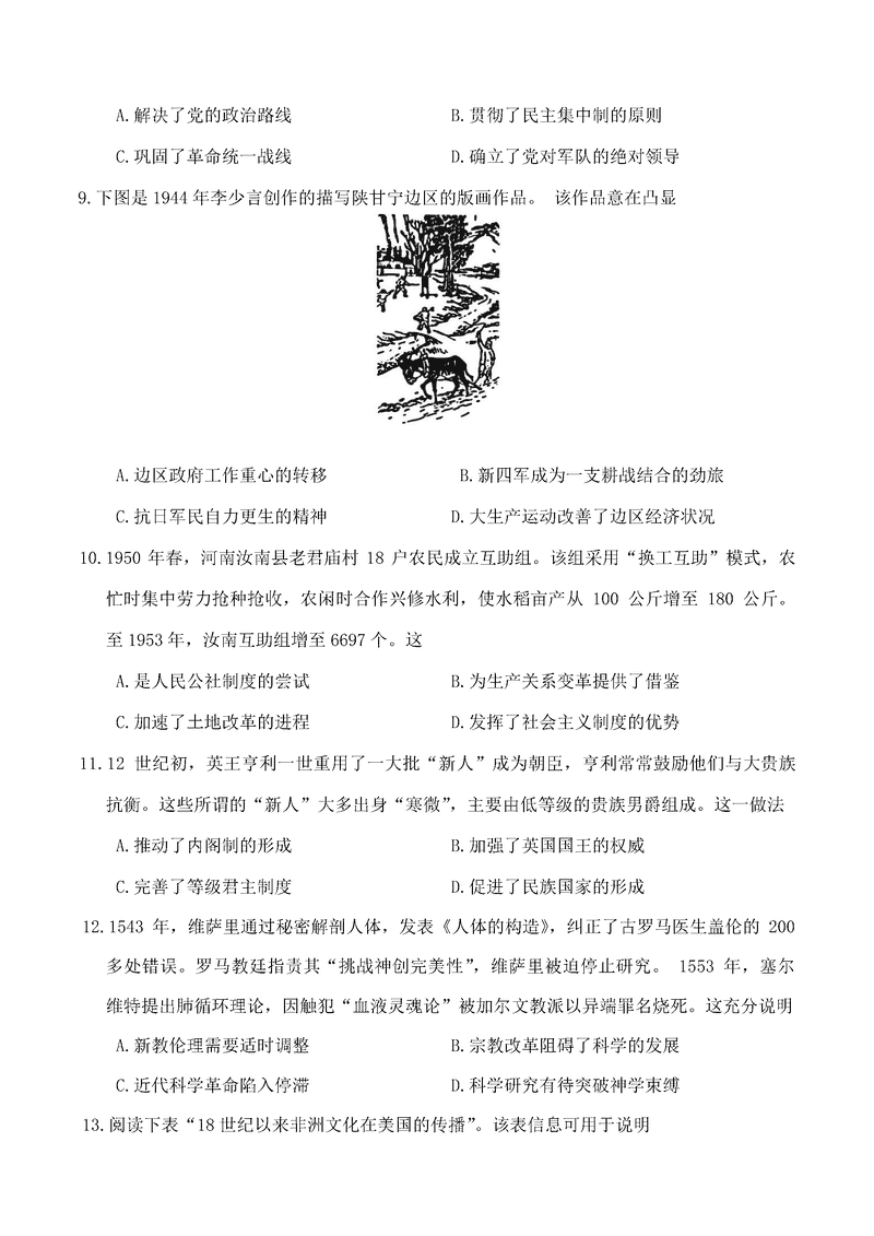 历史试题及答案解析