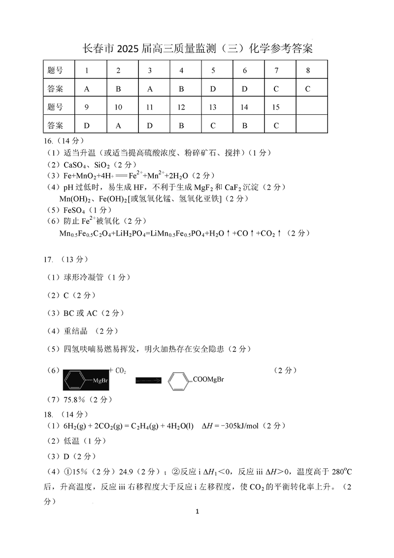 吉林长春2025届高三下学期质量监测(三)化学考试已于近日开考,为方便考生考后及时查看考试情况,查漏补缺、弥补不足,本文整理了试题答案解析相关信息!