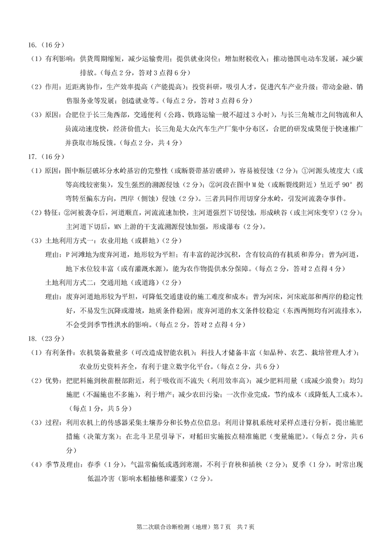 重庆康德二诊2025年高三第二次联合诊断地理试题及答案