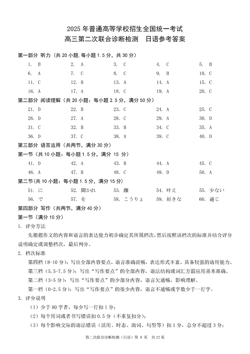 重庆康德二诊2025年高三第二次联合诊断日语考试已于近日开考,为方便考生考后及时查看考试情况,查漏补缺、弥补不足,本文整理了试题答案解析相关信息!