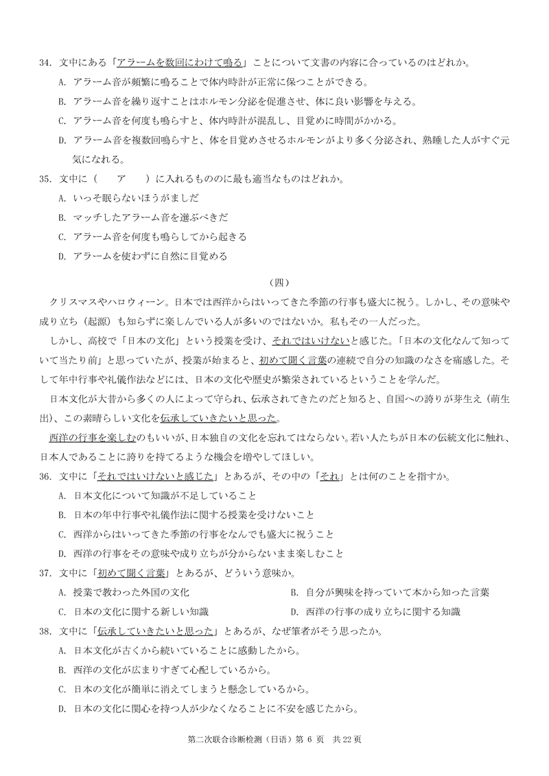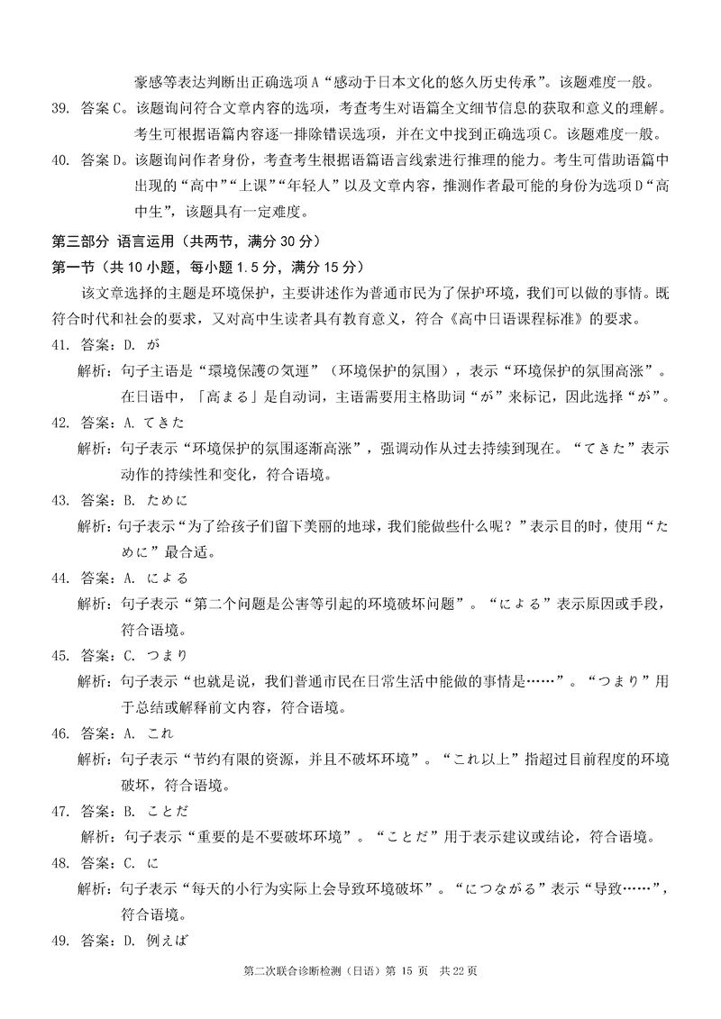 重庆康德二诊2025年高三第二次联合诊断日语试题及答案