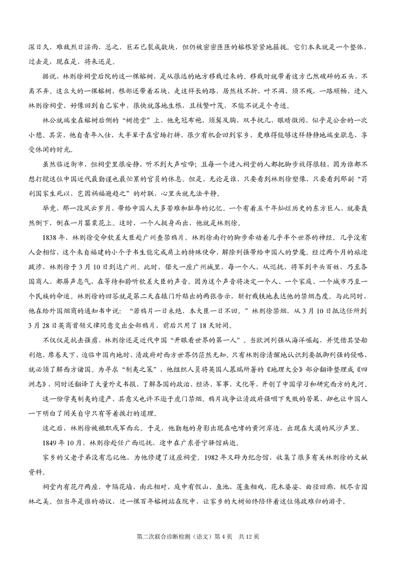重庆康德二诊2025年高三第二次联合诊断语文试题及答案