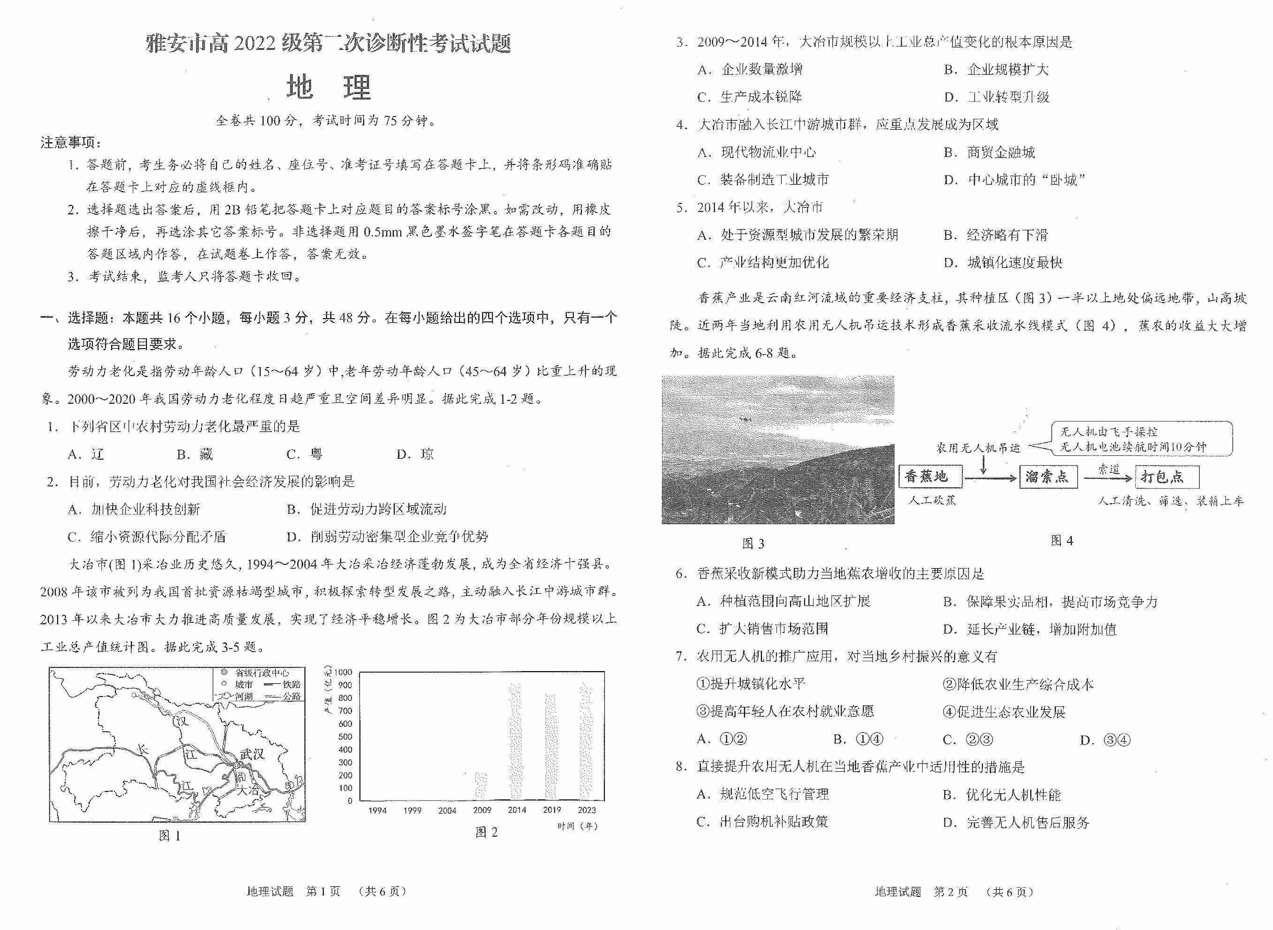 雅安市2025届高三下学期第二次诊断性地理试题及答案