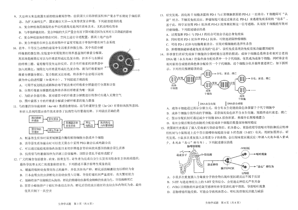 雅安市2025届高三下学期第二次诊断性生物试题及答案