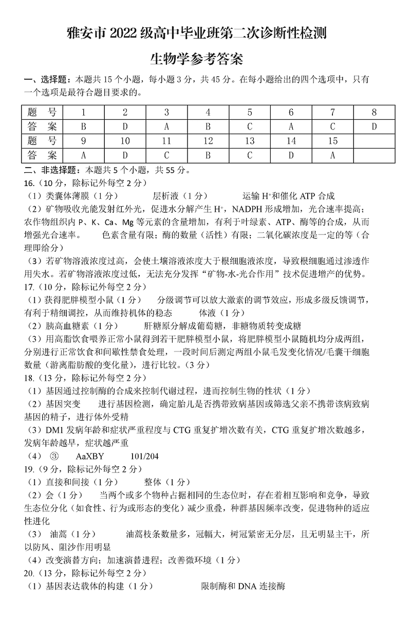 雅安市2025届高三下学期第二次诊断性生物考试已于近日开考,为方便考生考后及时查看考试情况,查漏补缺、弥补不足,本文整理了试题答案解析相关信息!