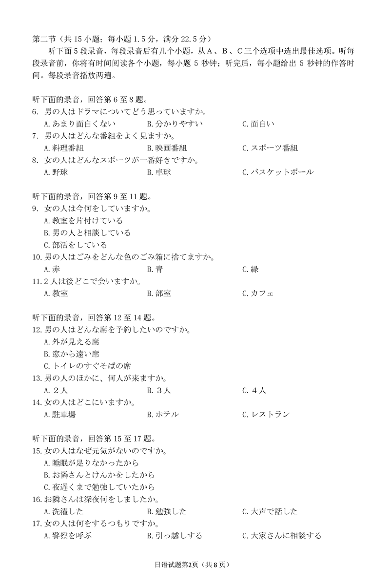 衢州、丽水、湖州三地市二模2025年4月高三教学质检日语试题及答案