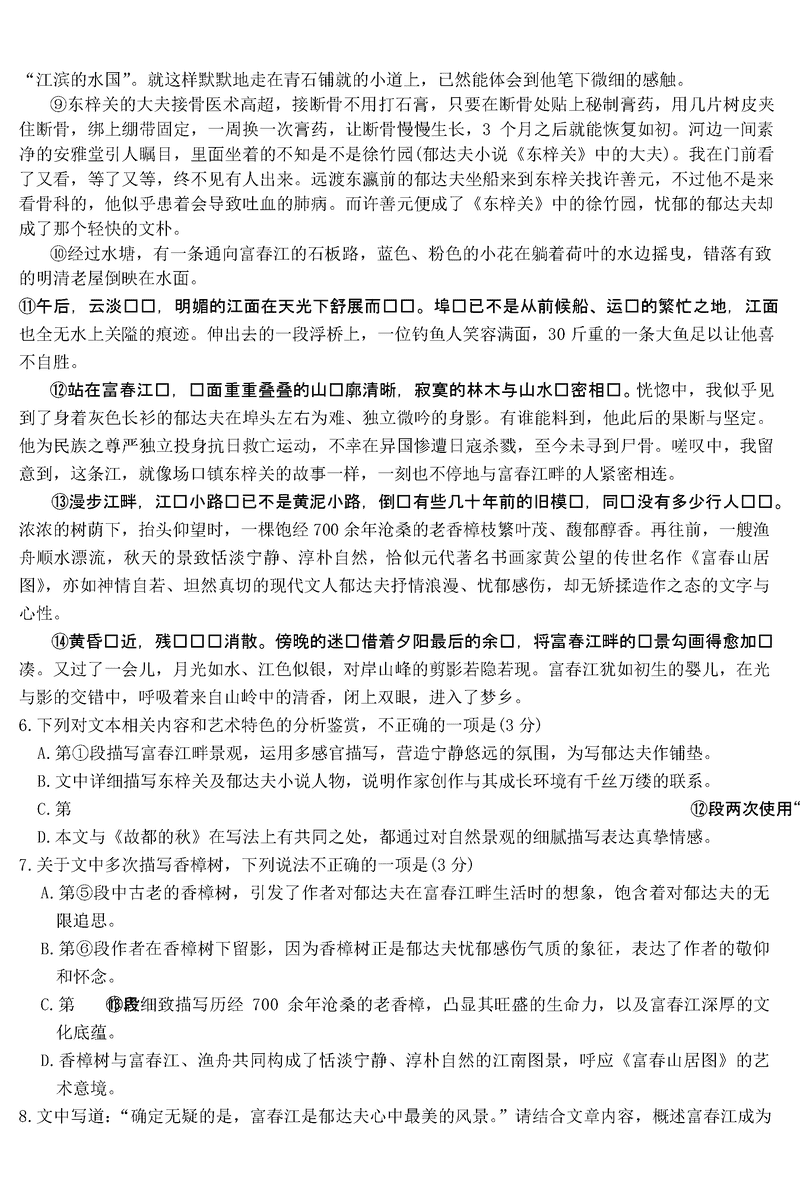 浙江 语文试题