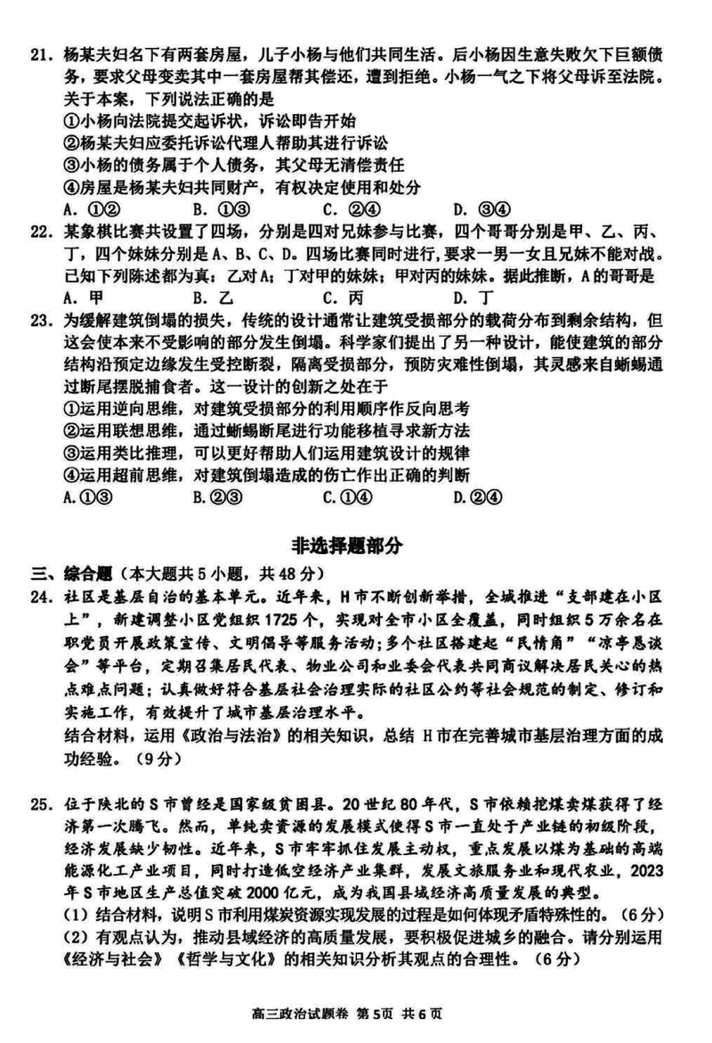 衢州、丽水、湖州三地市二模2025年4月高三教学质检政治试题及答案