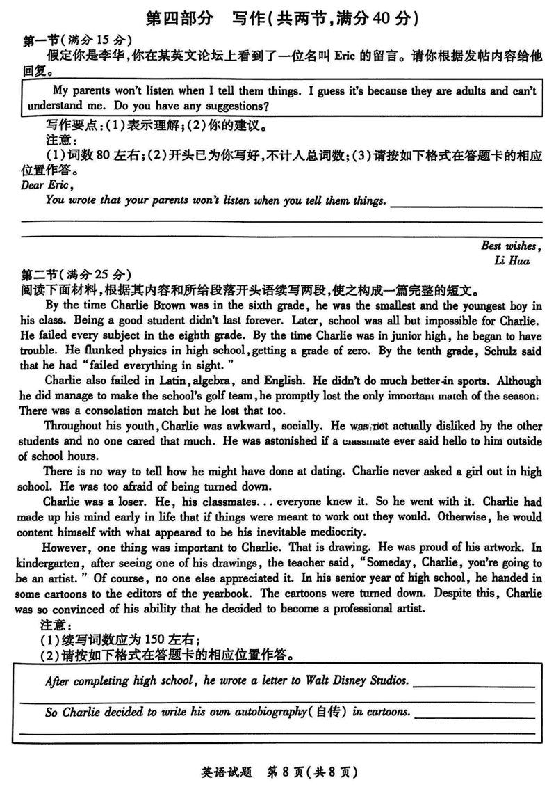 英语试题及答案解析