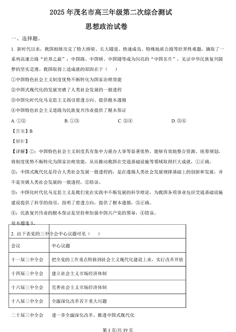 茂名二模2025年高三第二次综合测试政治试题及答案 时间:2025-04-15 广东 文综试题 茂名二模2025年高三第二次综合测试政治考试已于近日开考,为方便考生考后及时查看考试情况,查漏补缺、弥补不足,本文整理了试题答案解析相关信息! 汇总:茂名二模2025年高三第二次综合测试试题及答案汇总 政治试题及答案解析