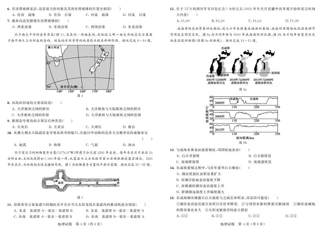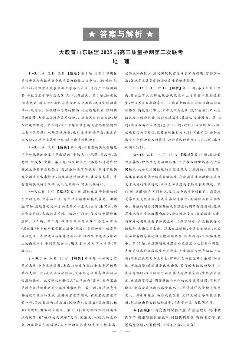 大教育山东联盟2025届高三质量检测第二次联考地理试题及答案