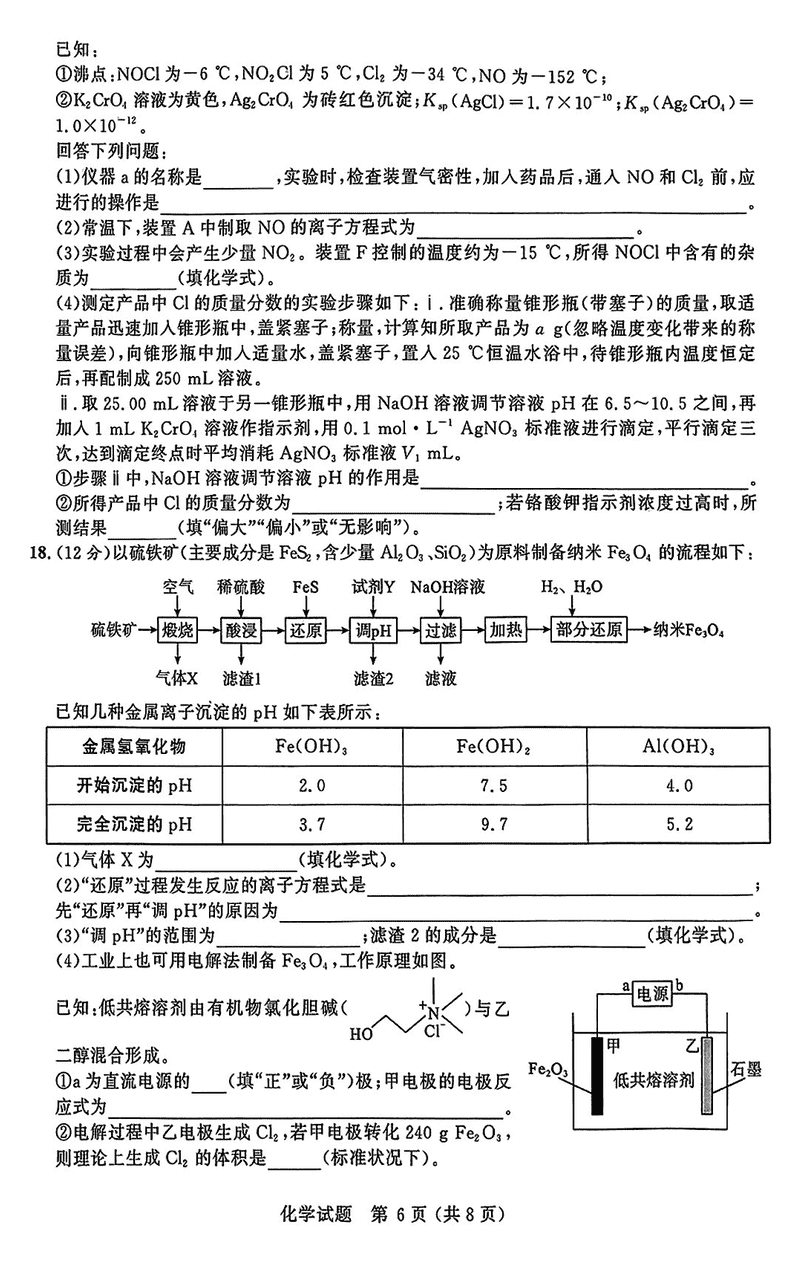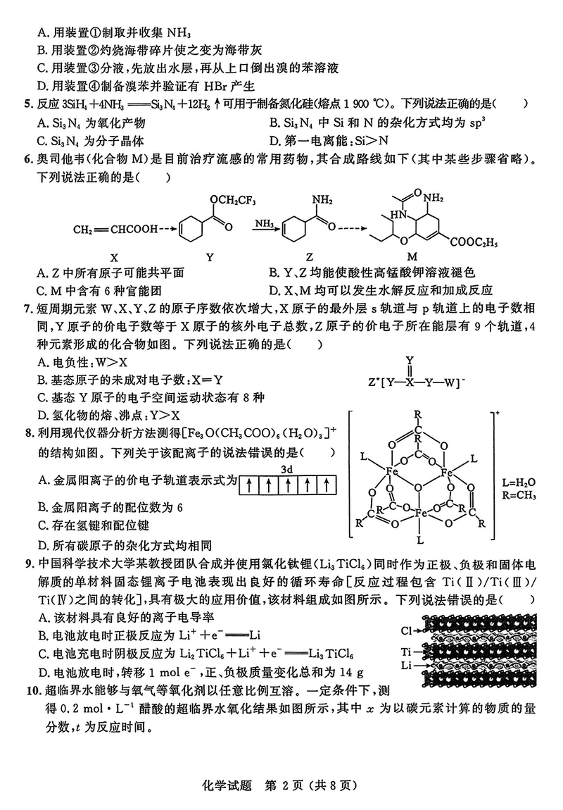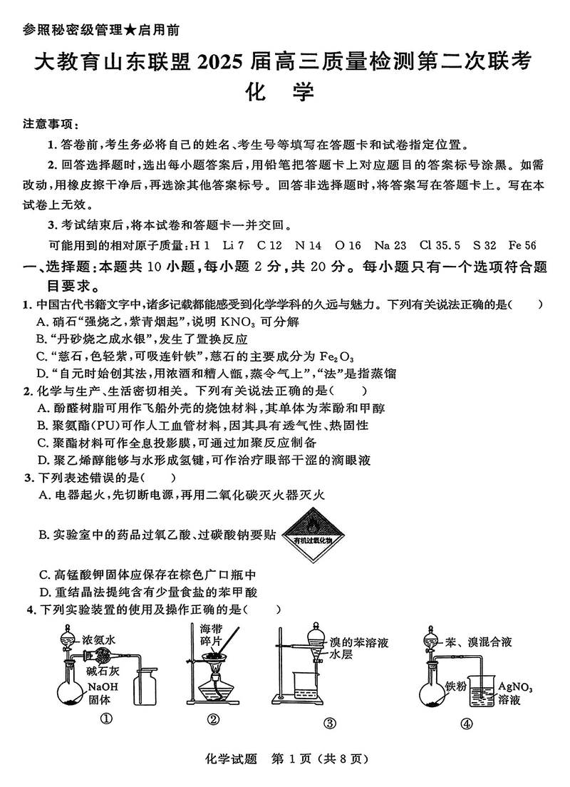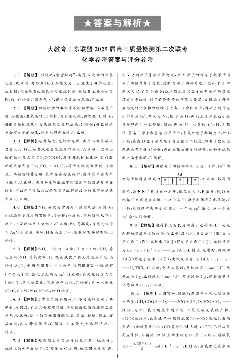 大教育山东联盟2025届高三质量检测第二次联考化学试题及答案
