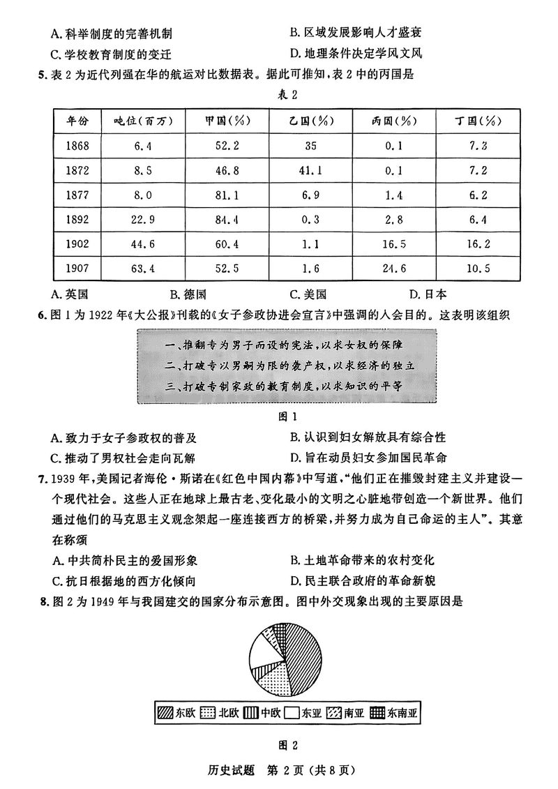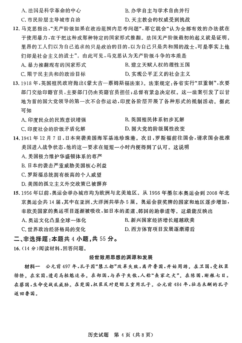 大教育山东联盟2025届高三质量检测第二次联考历史试题及答案