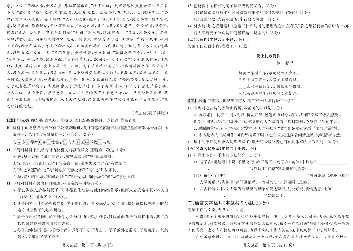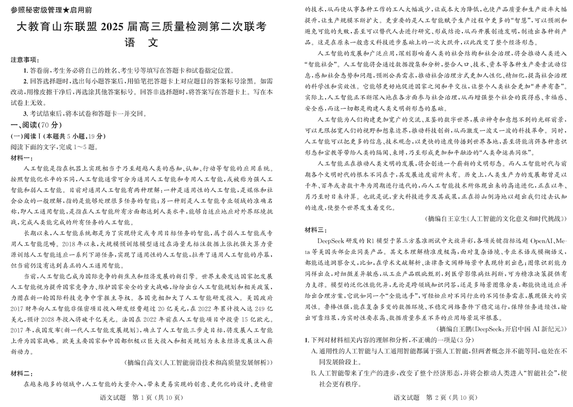 大教育山东联盟2025届高三质量检测第二次联考语文试题及答案