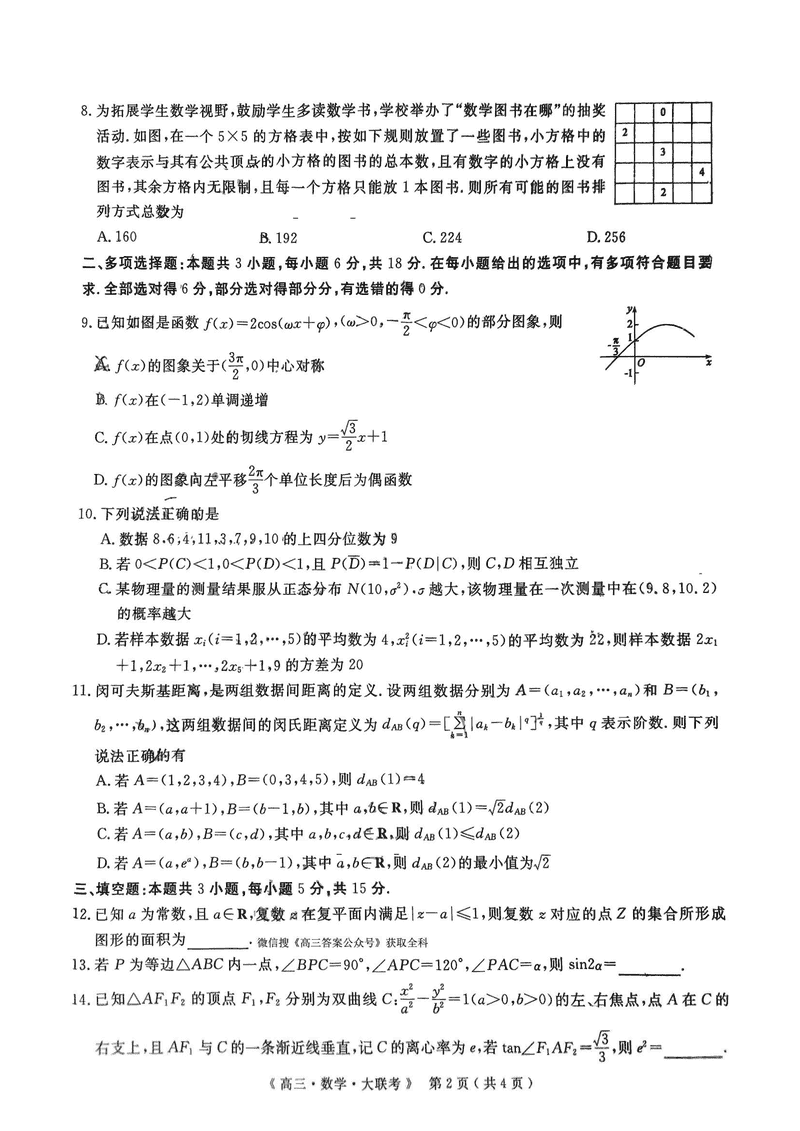 河南H20高中联盟2025届高三下学期4月联考数学试题及答案
