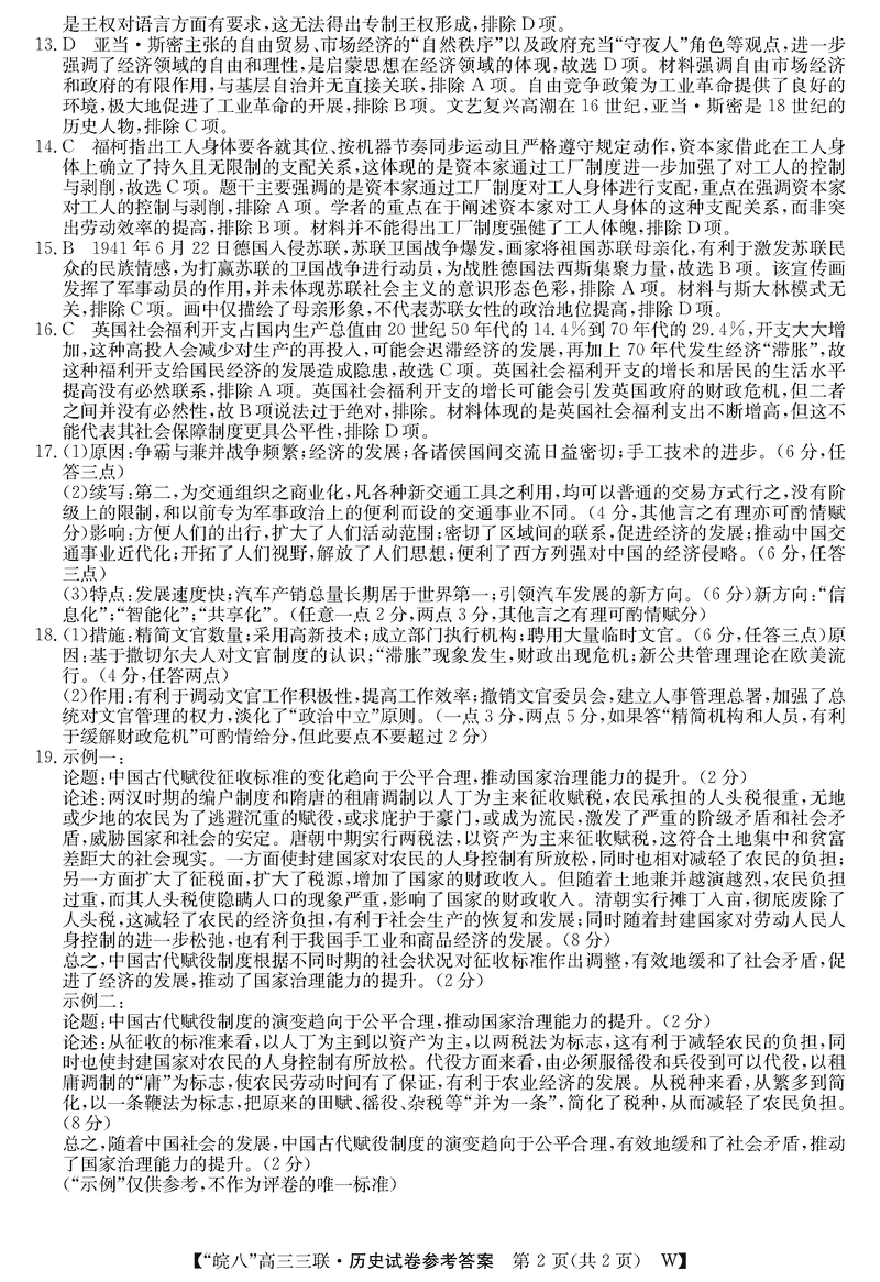 安徽皖南八校2025届高三第三次大联考历史试题及答案