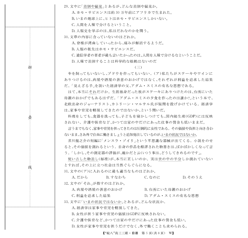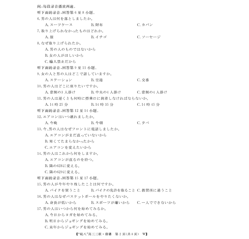 安徽皖南八校2025届高三第三次大联考日语试题及答案