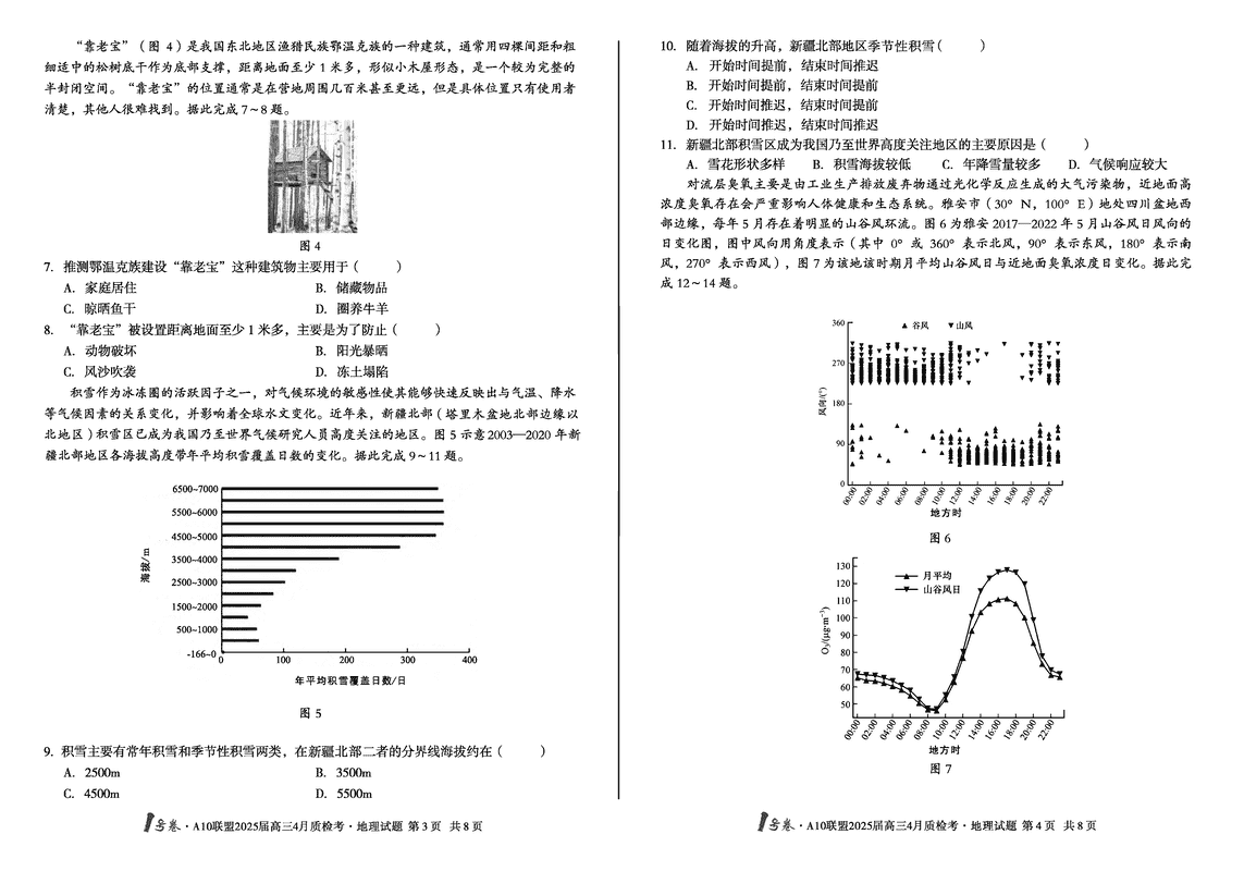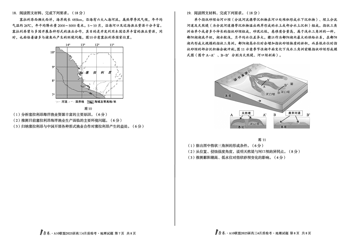安徽省1号卷·A10联盟2025届高三4月质检地理试题及答案