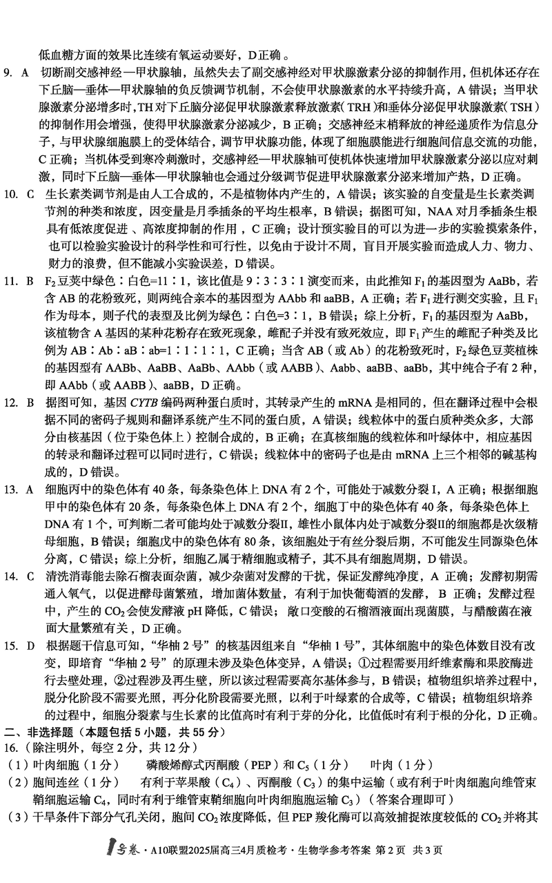 安徽省1号卷·A10联盟2025届高三4月质检生物考试已于近日开考,为方便考生考后及时查看考试情况,查漏补缺、弥补不足,本文整理了试题答案解析相关信息!