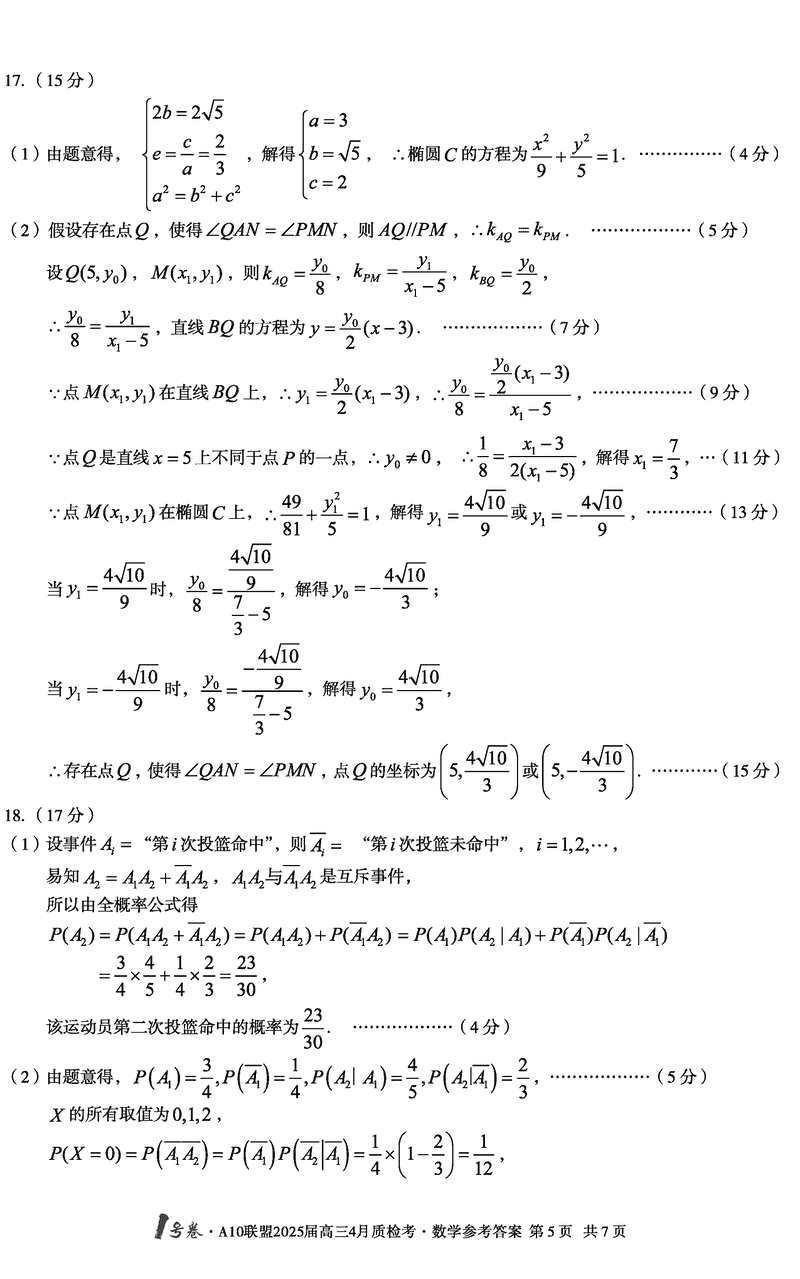 安徽省1号卷·A10联盟2025届高三4月质检数学考试已于近日开考,为方便考生考后及时查看考试情况,查漏补缺、弥补不足,本文整理了试题答案解析相关信息!
