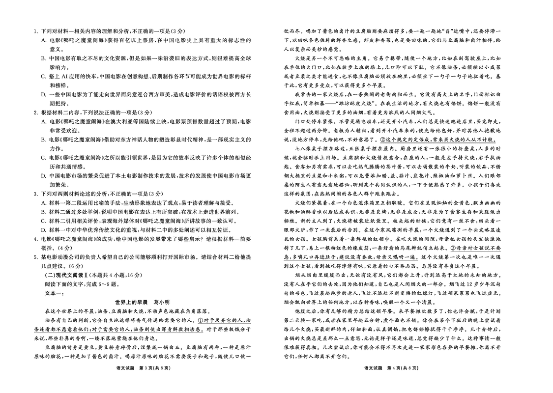 山东省齐鲁名校大联考2025届高三第七次学业水平联合检测语文试题及答案