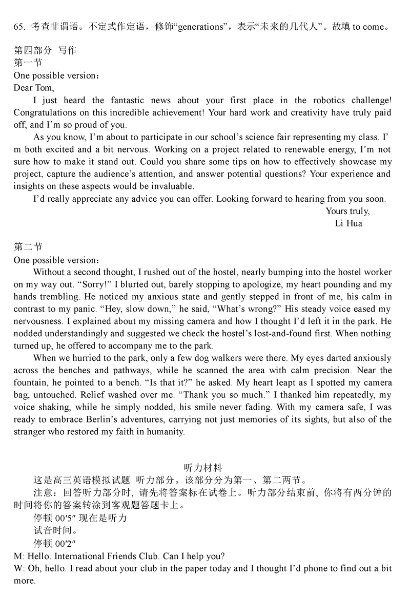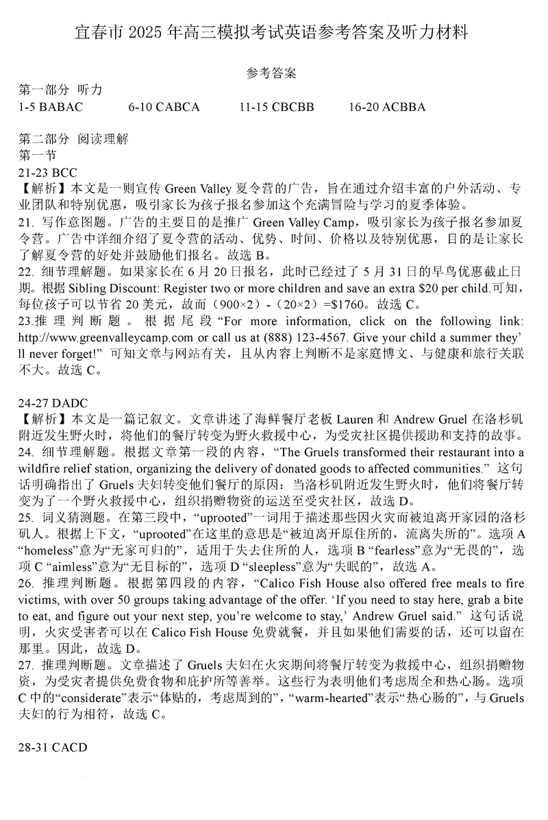 宜春二模2025届高三下学期4月模考英语试题及答案 时间:2025-04-21 江西 英语试题 宜春二模2025届高三下学期4月模考英语考试已于近日开考,为方便考生考后及时查看考试情况,查漏补缺、弥补不足,本文整理了试题答案解析相关信息! 汇总:宜春二模2025届高三下学期4月模考试题及答案汇总 英语试题及答案解析