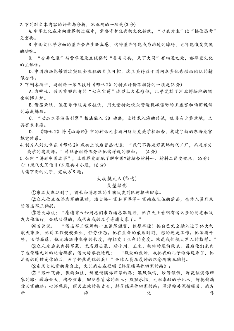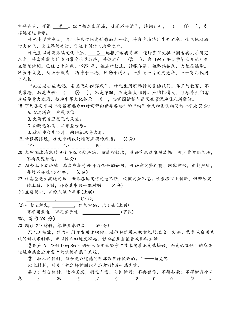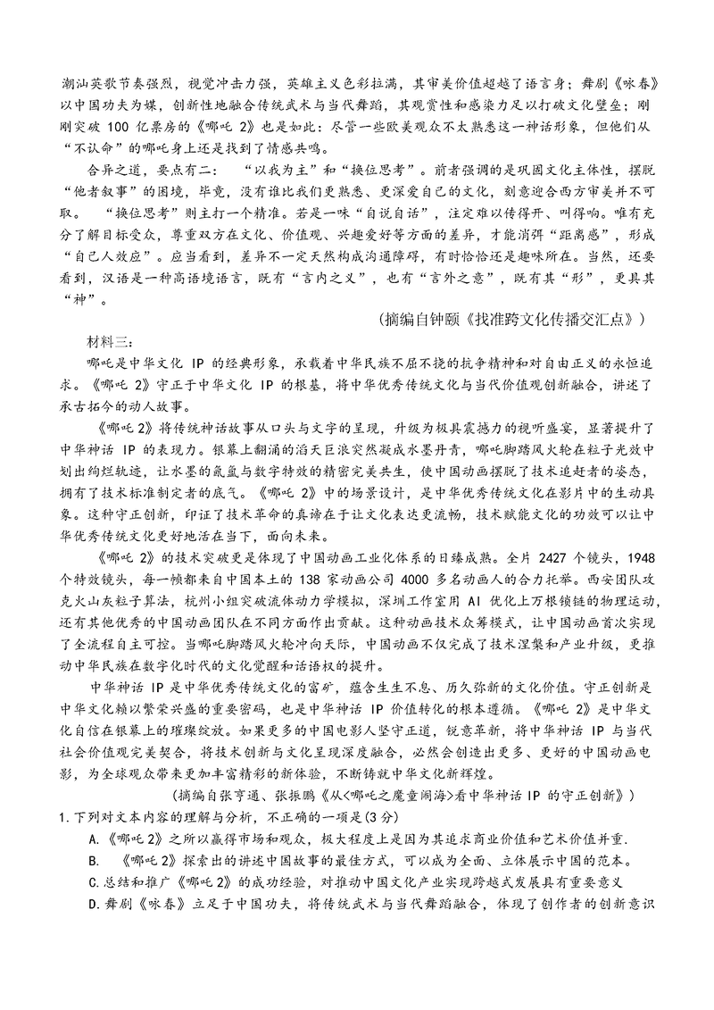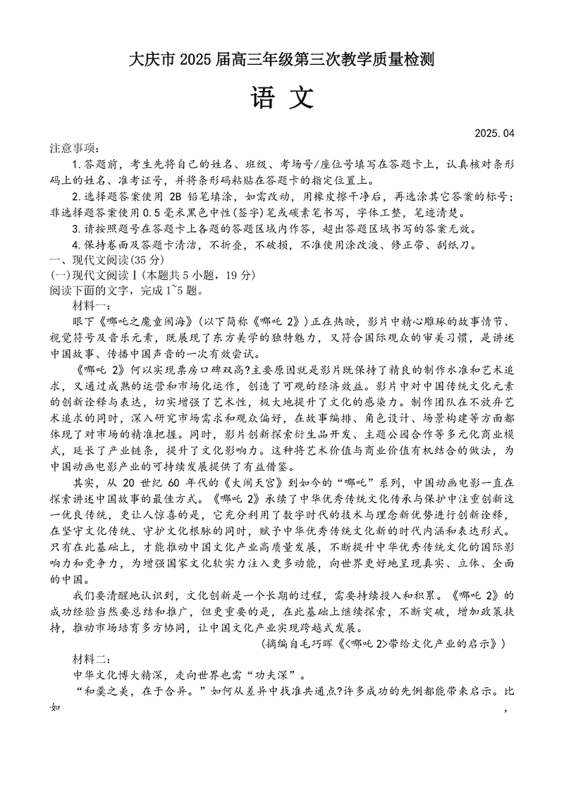 黑龙江大庆2025届高三下学期第三次模考语文试题及答案