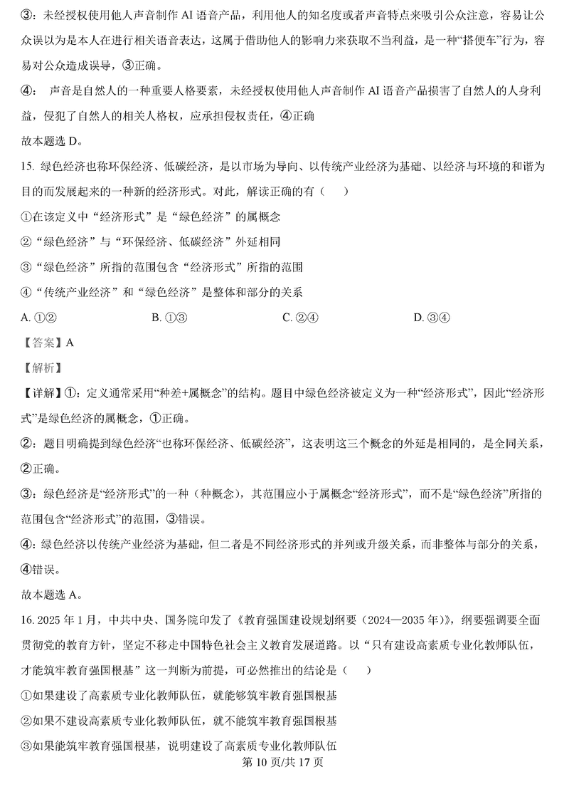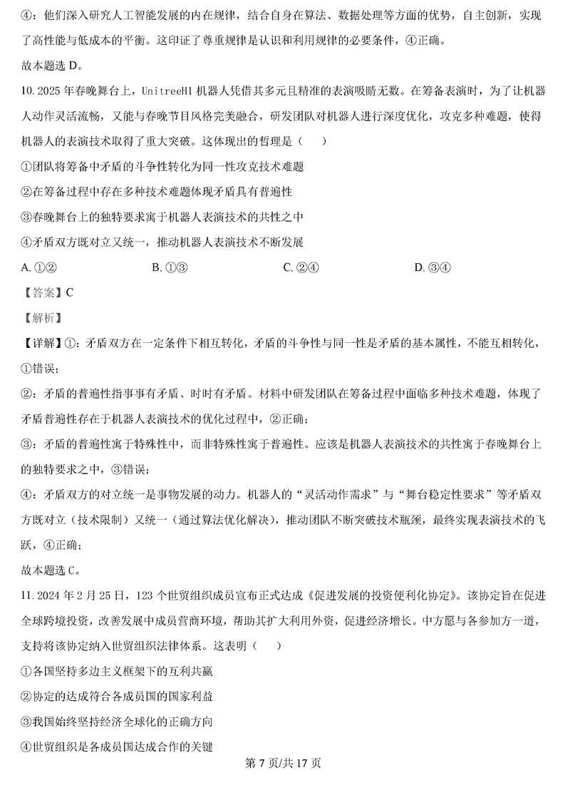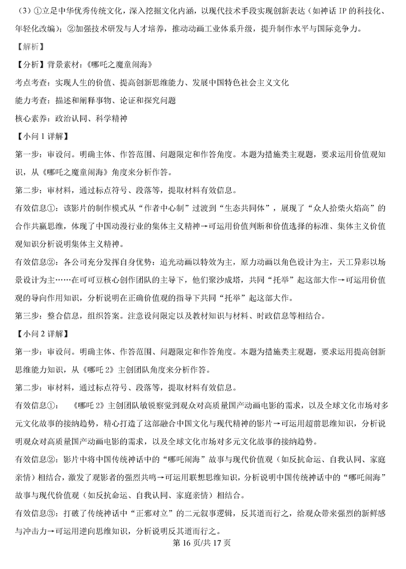 黑龙江大庆2025届高三下学期第三次模考政治试题及答案