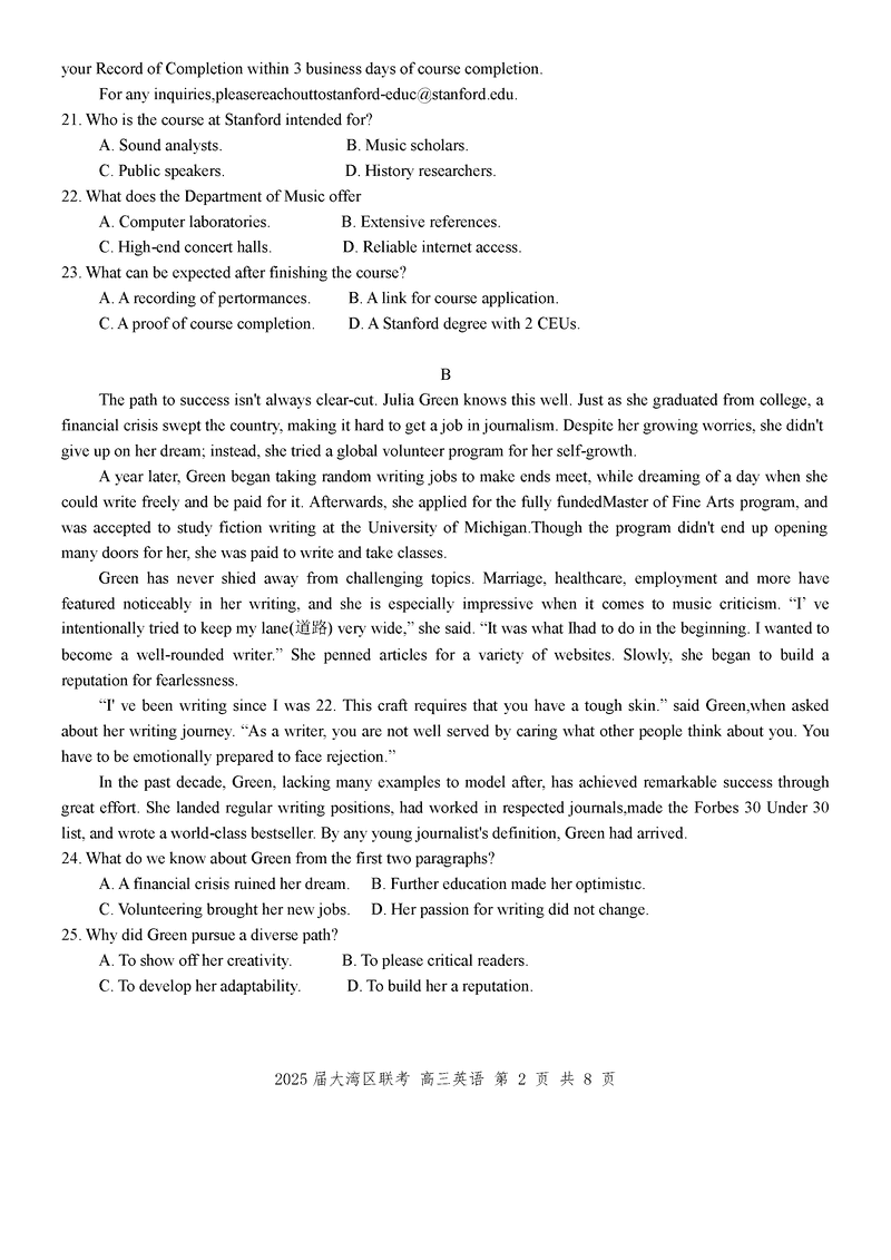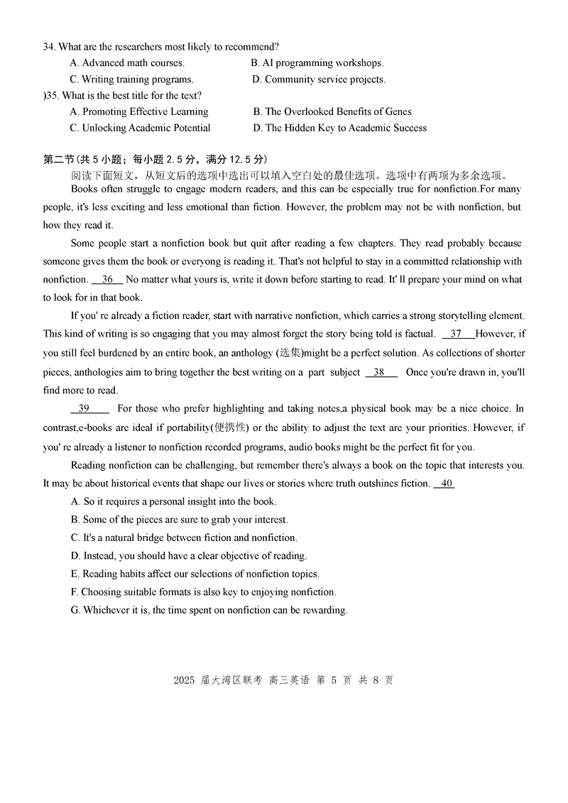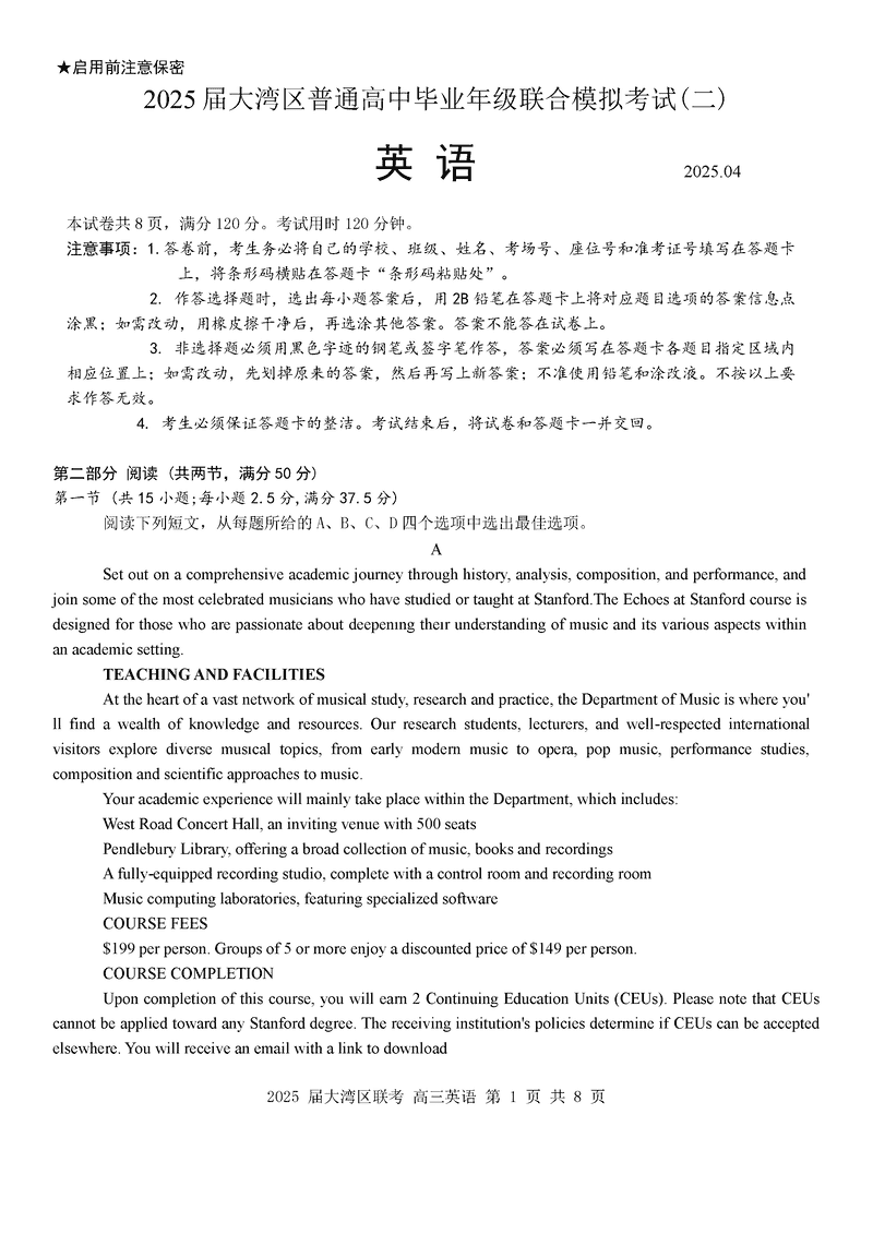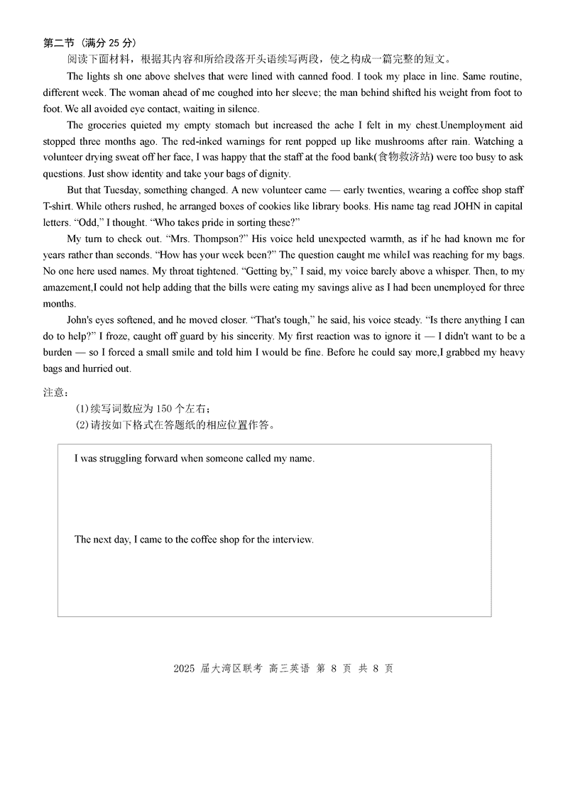 广东大湾区二模2025届高三联合模考(二)英语试题及答案