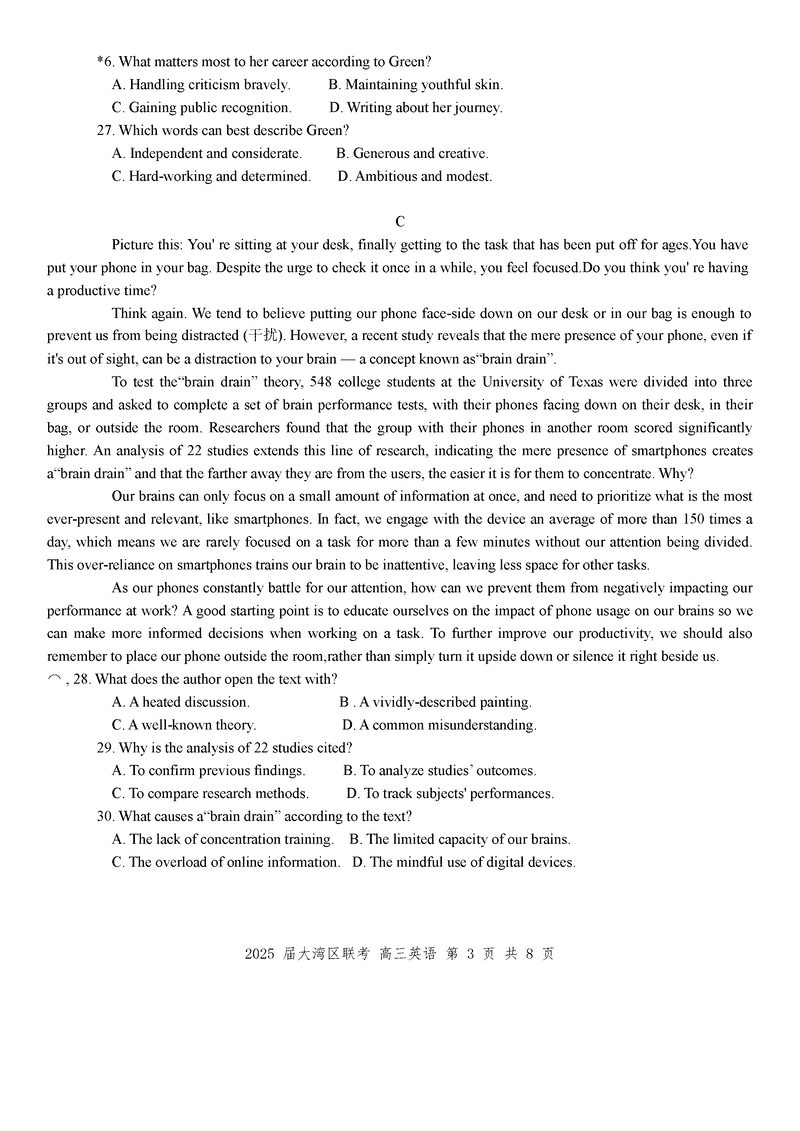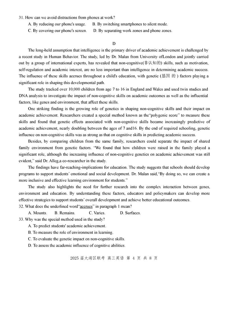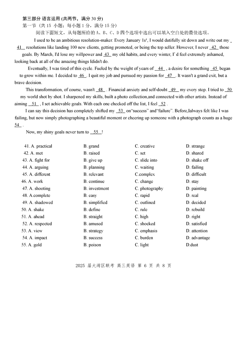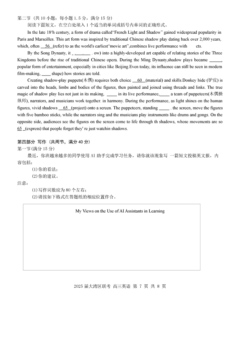 广东大湾区二模2025届高三联合模考(二)英语试题及答案