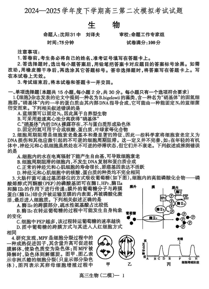 辽宁协作校2025届高三第二次模拟考生物试题及答案 时间:2025-04-24 辽宁 理综试题 辽宁协作校2025届高三第二次模拟考生物考试已于近日开考,为方便考生考后及时查看考试情况,查漏补缺、弥补不足,本文整理了试题答案解析相关信息! 汇总:辽宁协作校2025届高三第二次模拟考试题及答案汇总 生物试题及答案解析