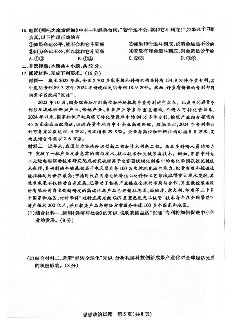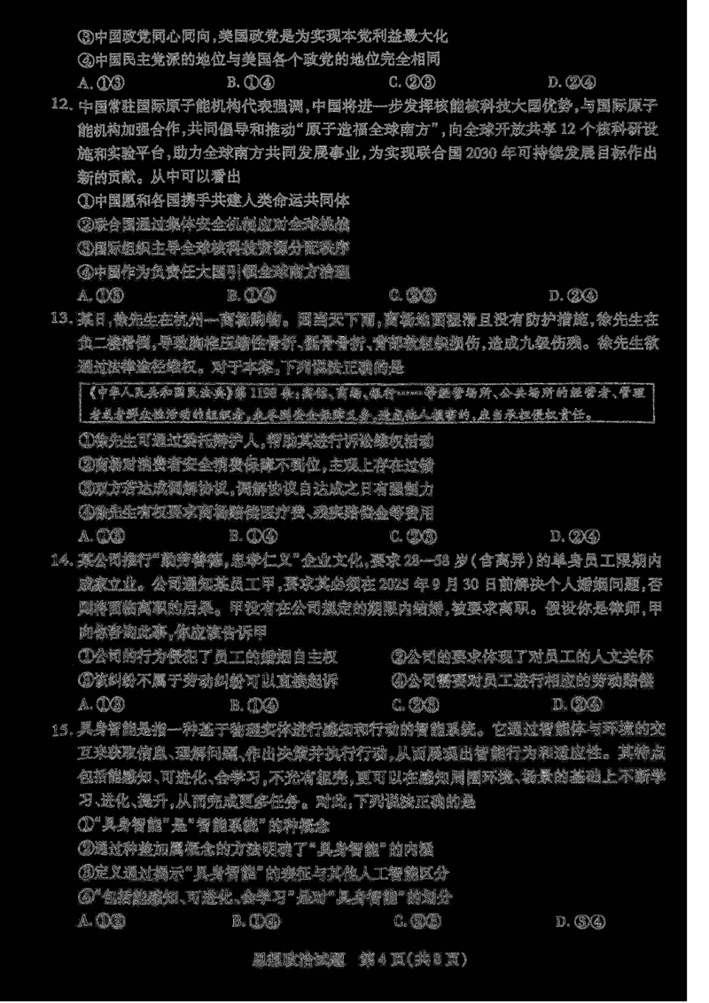 安徽卓越县中联2025年高三下学期5月检测政治试题及答案
