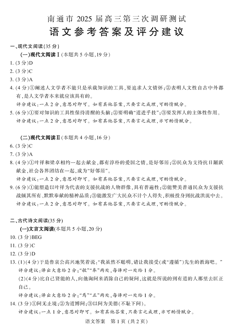 江苏苏北八市2025届高三三模(南通、泰州、扬州、徐州、连云港、淮安、宿迁、盐城)语文考试已于近日开考,为方便考生考后及时查看考试情况,查漏补缺、弥补不足,本文整理了试题答案解析相关信息!