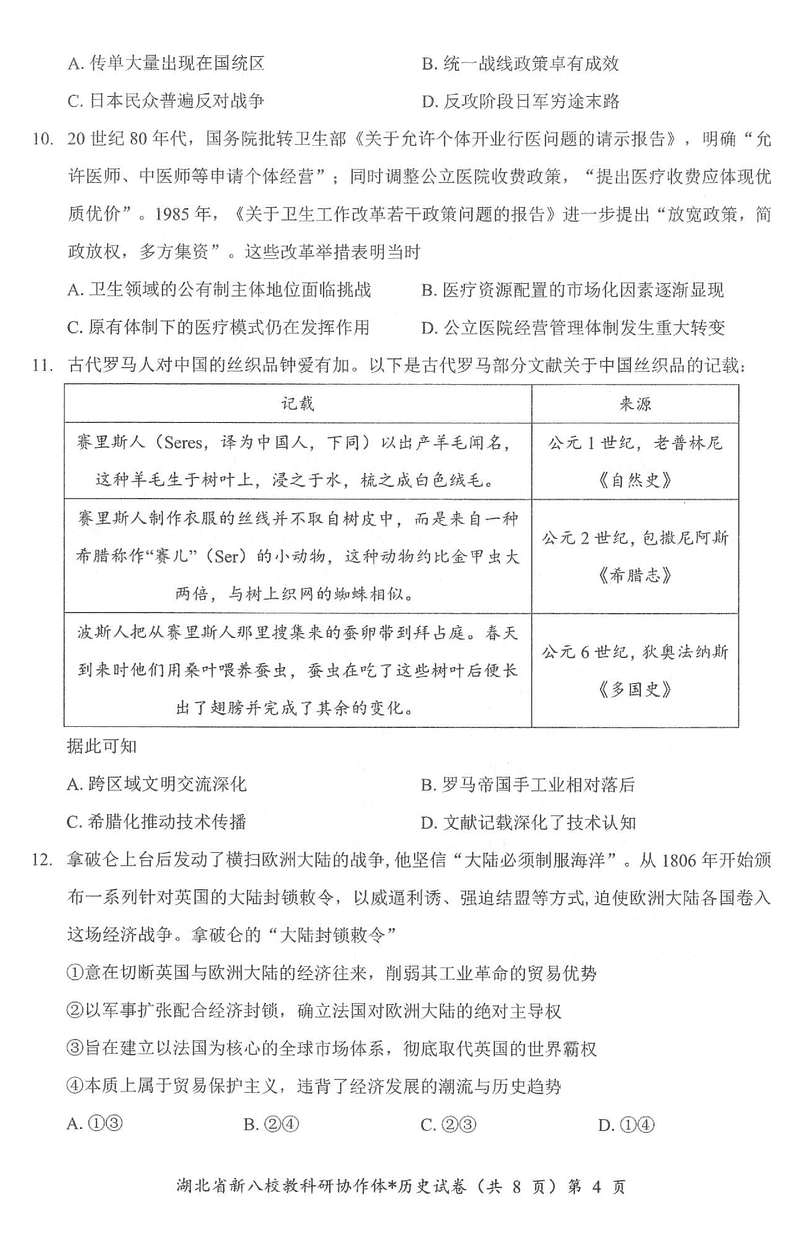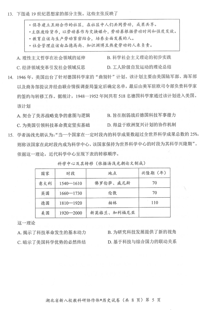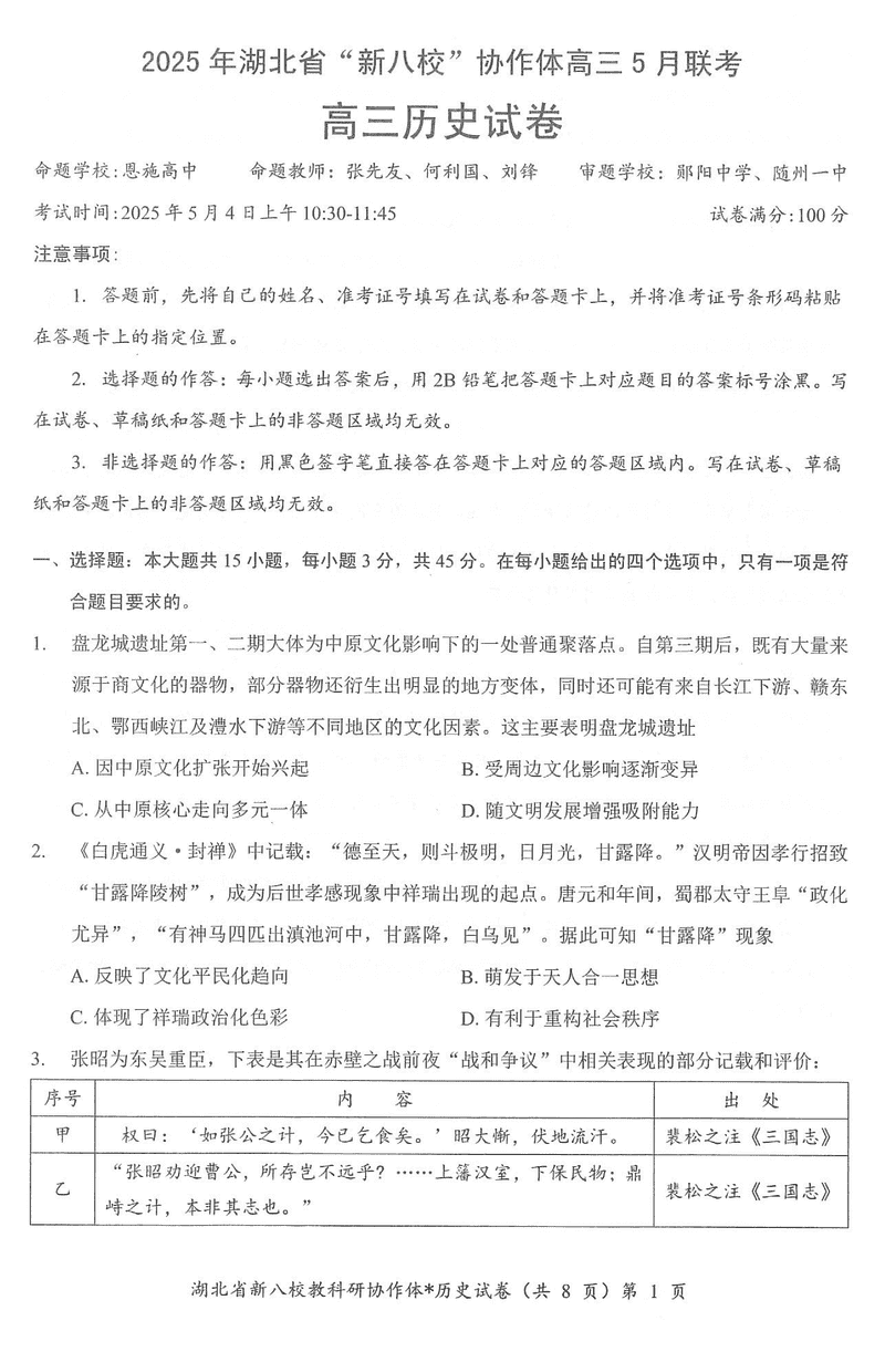 2025年湖北省新八校协作体高三5月联考历史试题及答案