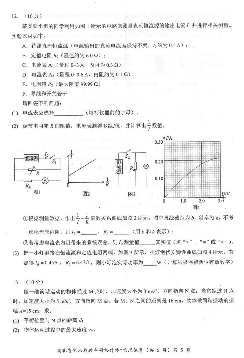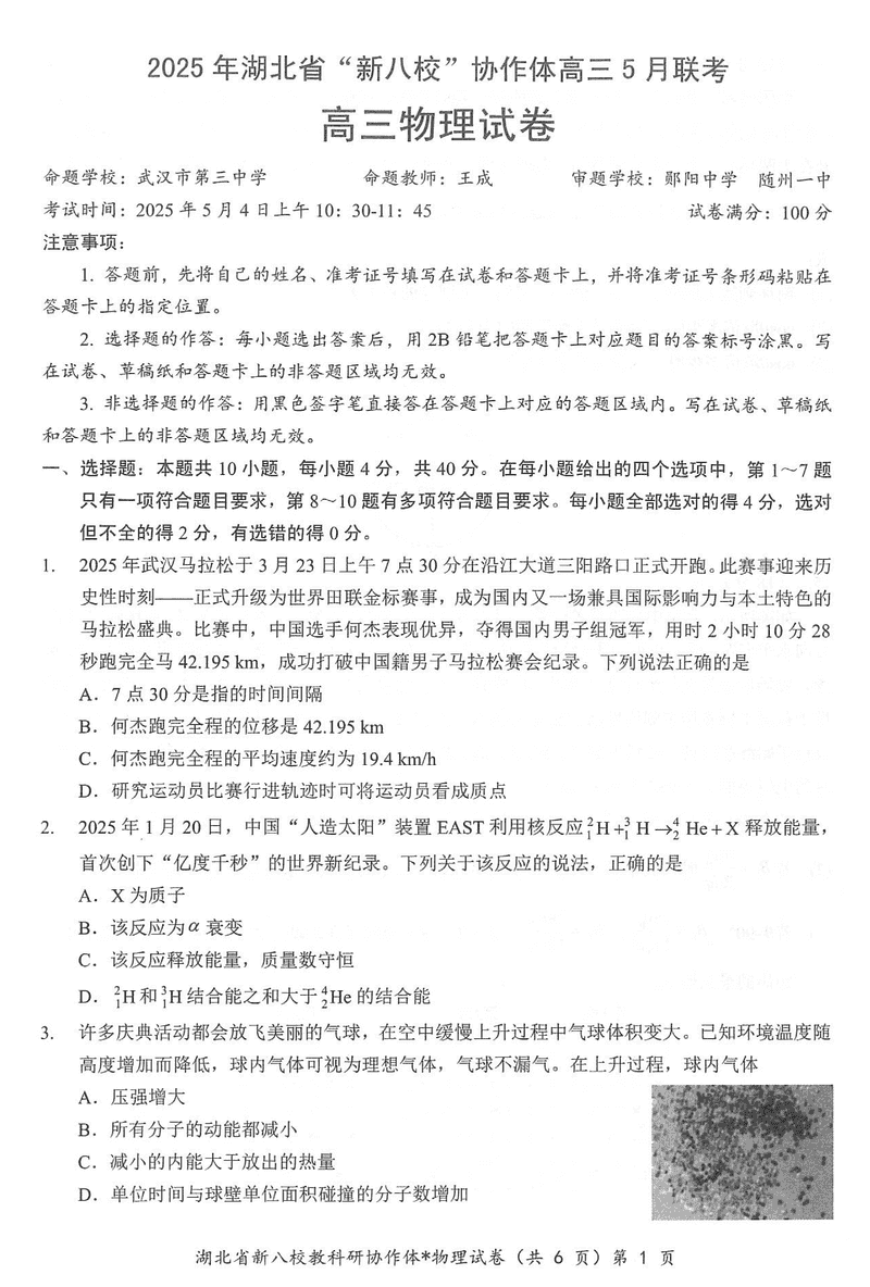 2025年湖北省新八校协作体高三5月联考物理试题及答案