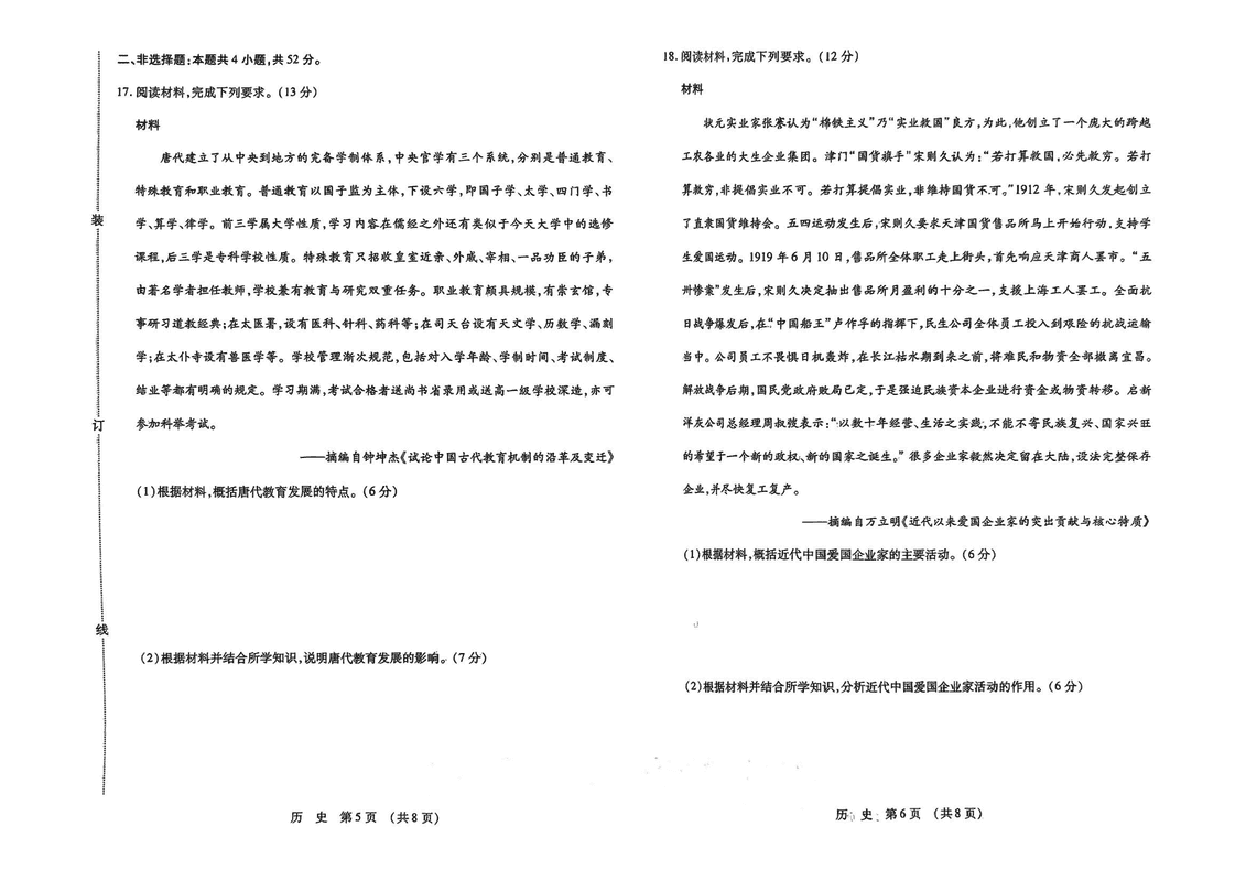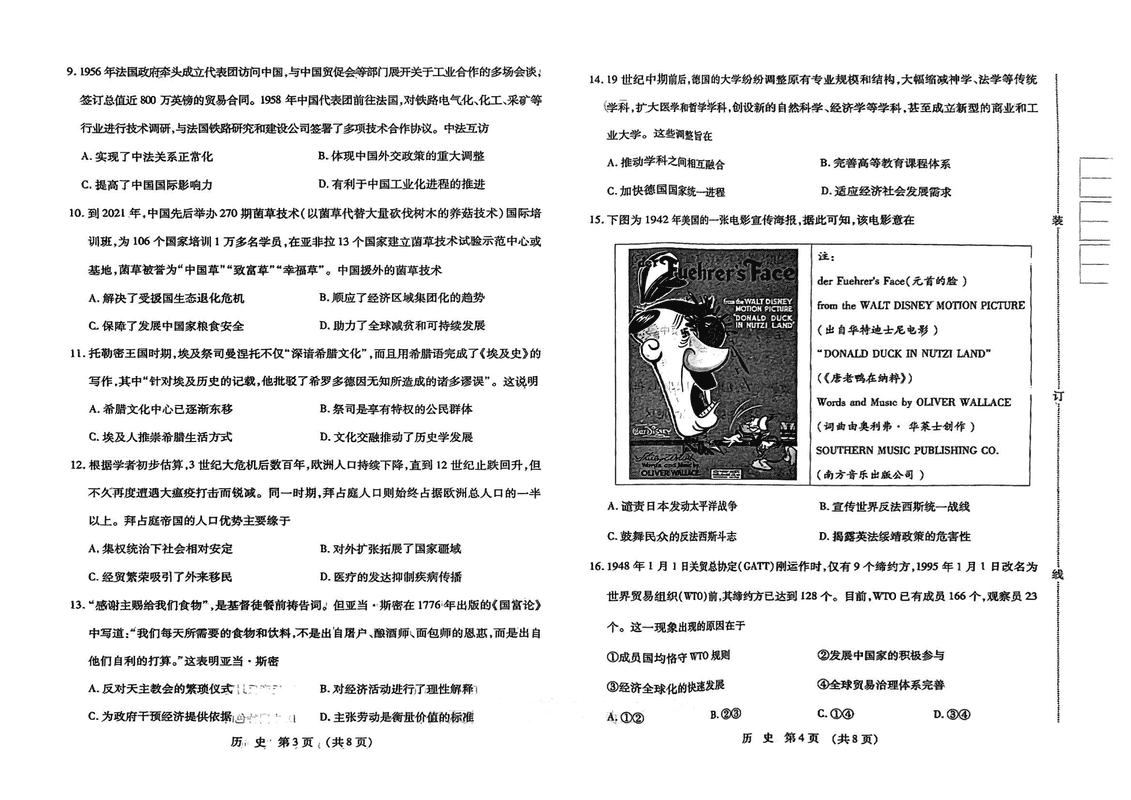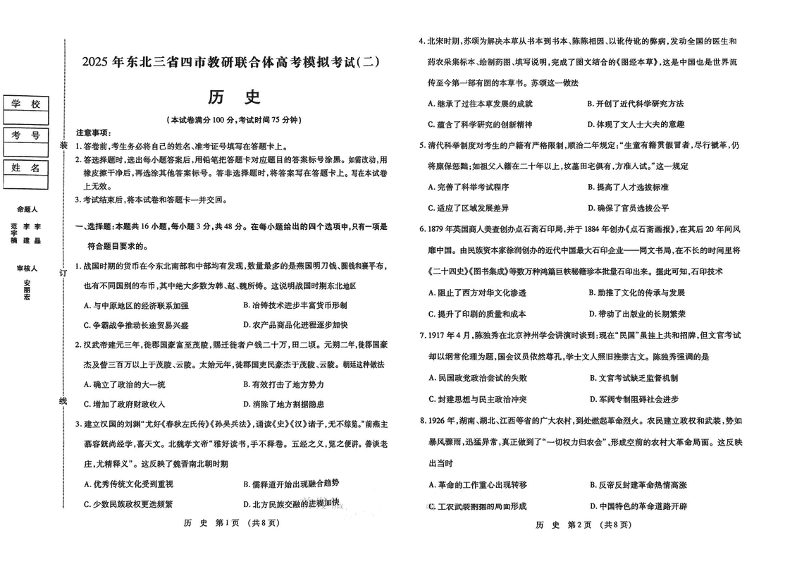 东北三省四市教研联合体2025年高考模拟试题(二)历史试题及答案