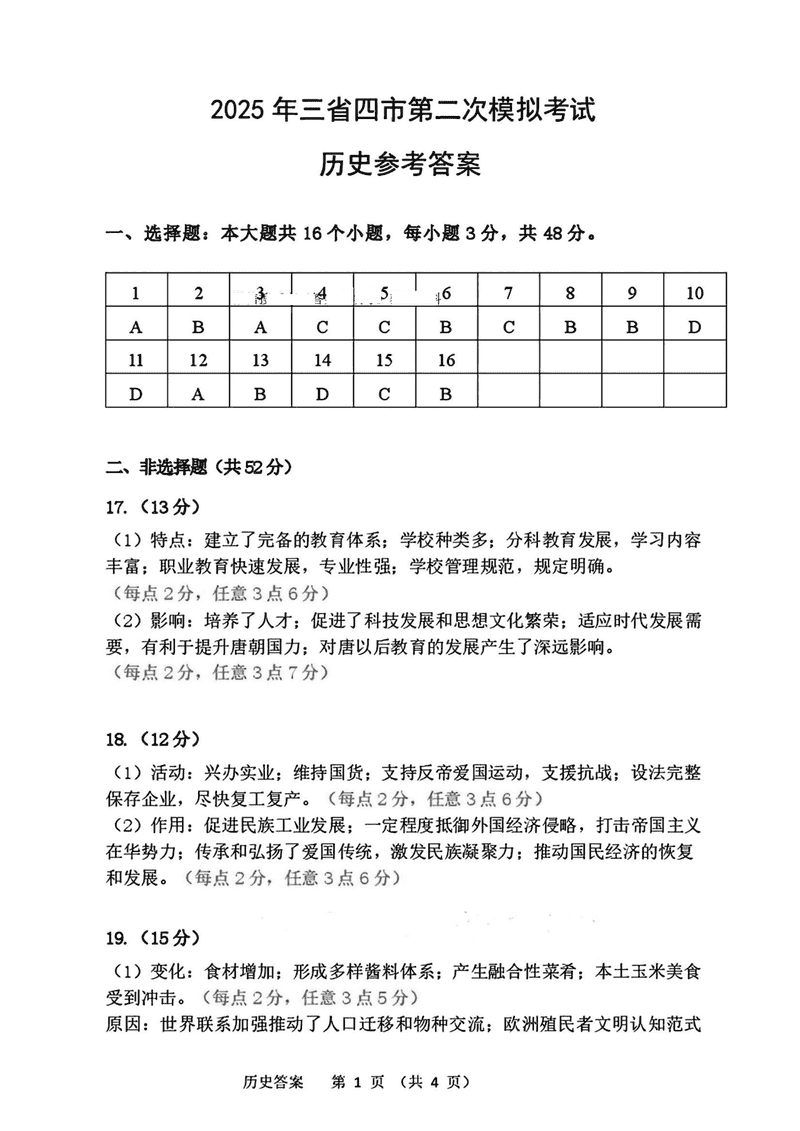 东北三省四市教研联合体2025年高考模拟试题(二)历史考试已于近日开考,为方便考生考后及时查看考试情况,查漏补缺、弥补不足,本文整理了试题答案解析相关信息!