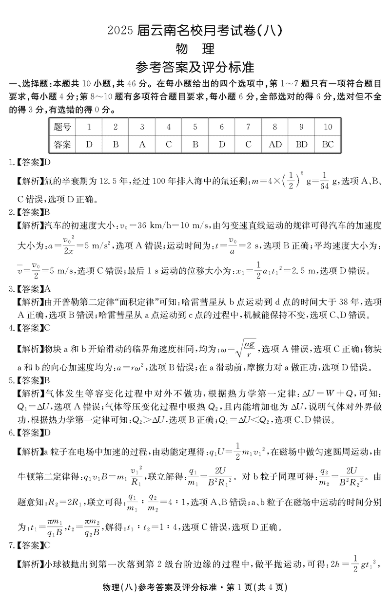 云南名校联盟2025届高三月考八物理考试已于近日开考,为方便考生考后及时查看考试情况,查漏补缺、弥补不足,本文整理了试题答案解析相关信息!
