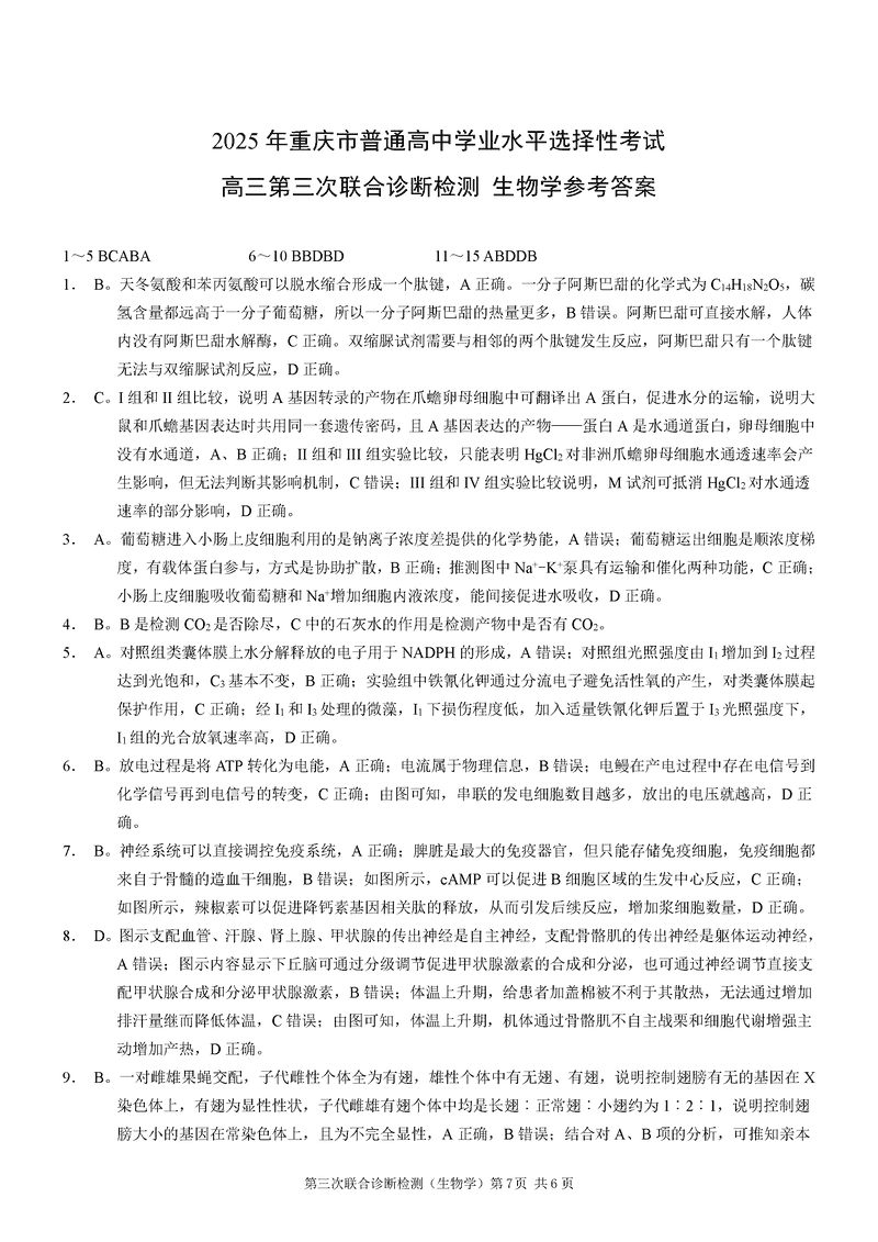 重庆康德三诊2025年高三第三次联合检测生物考试已于近日开考,为方便考生考后及时查看考试情况,查漏补缺、弥补不足,本文整理了试题答案解析相关信息!