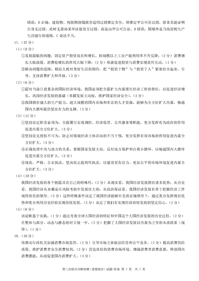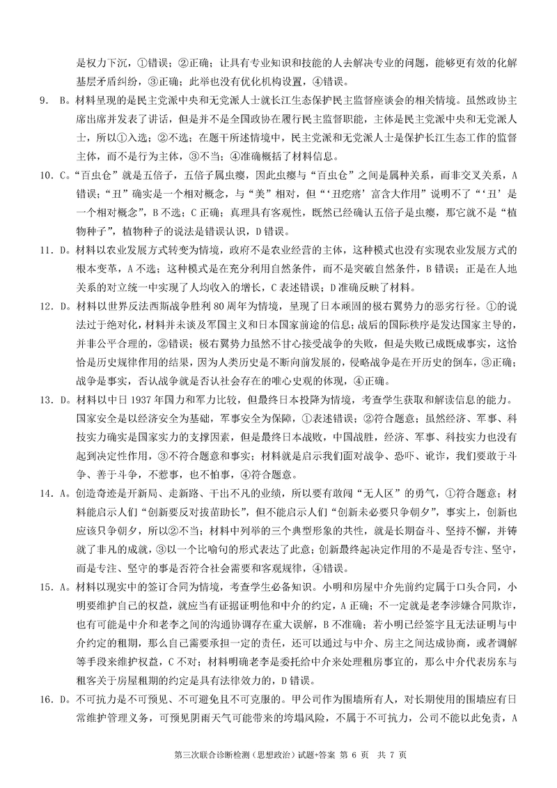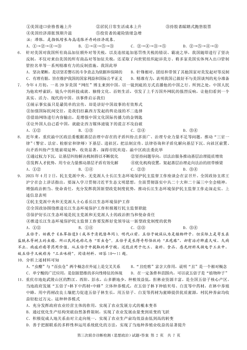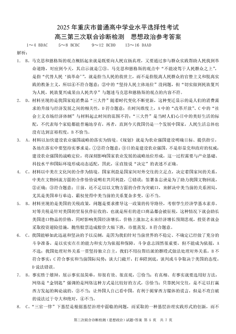 重庆康德三诊2025年高三第三次联合检测政治试题及答案