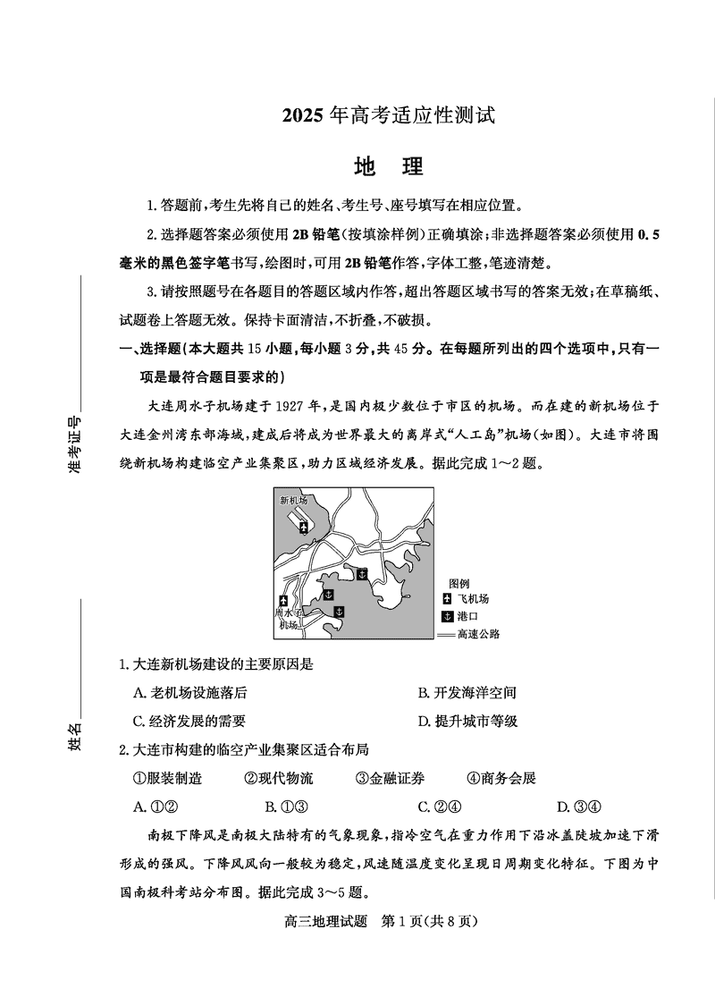 烟台、德州二模2025届高三高考适应性测试地理考试已于近日开考,为方便考生考后及时查看考试情况,查漏补缺、弥补不足,本文整理了试题答案解析相关信息!