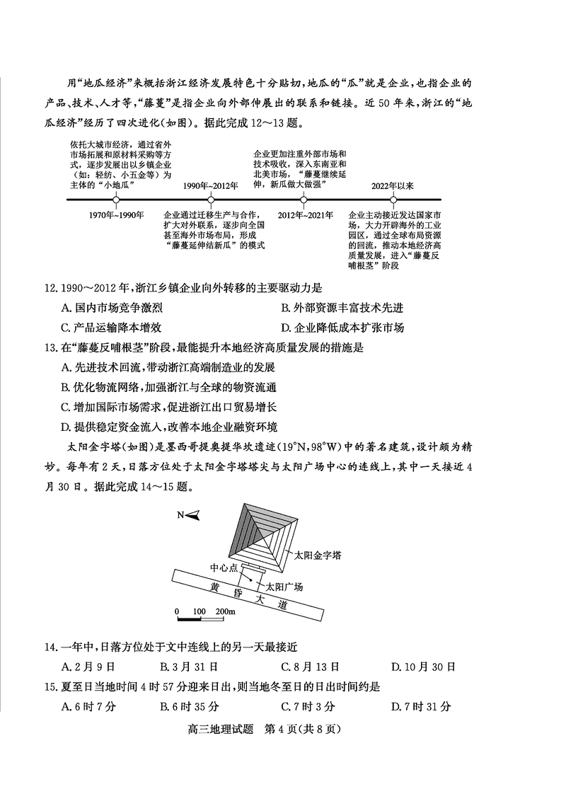 烟台、德州二模2025届高三高考适应性测试地理试题及答案