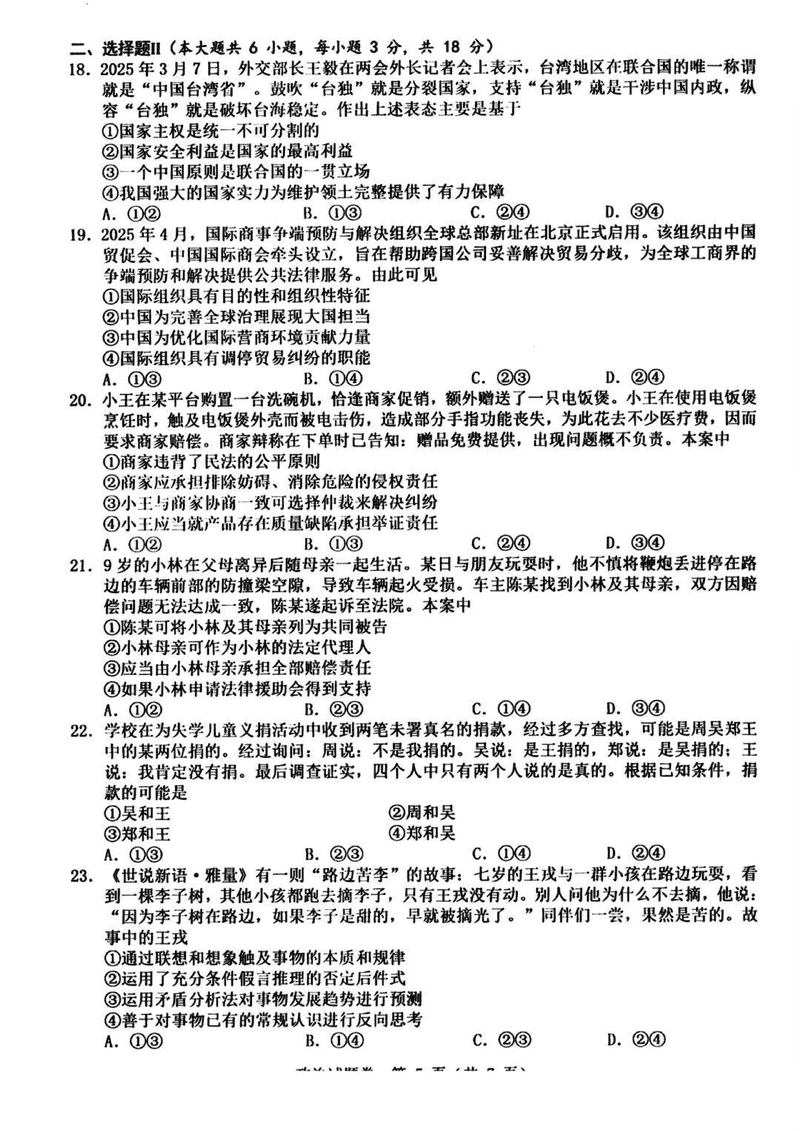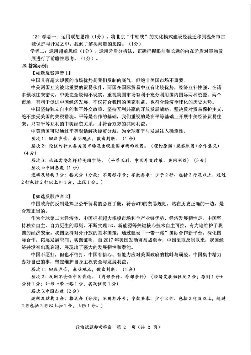 温州三模2025届高三第三次适应性考政治试题及答案 时间:2025-05-12 浙江 文综试题 温州三模2025届高三第三次适应性考政治考试已于近日开考,为方便考生考后及时查看考试情况,查漏补缺、弥补不足,本文整理了试题答案解析相关信息! 汇总:温州三模2025届高三第三次适应性考试试题及答案汇总 政治试题及答案解析