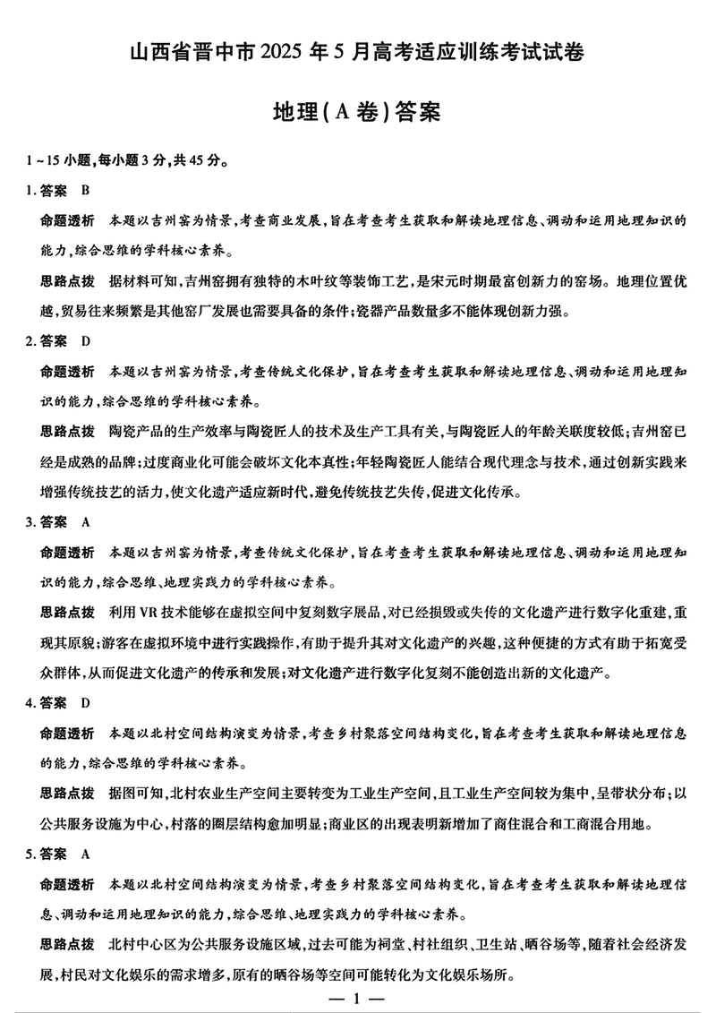 晋中三模2025年5月高考适应训练地理试题及答案 时间:2025-05-12 山西 文综试题 晋中三模2025年5月高考适应训练地理考试已于近日开考,为方便考生考后及时查看考试情况,查漏补缺、弥补不足,本文整理了试题答案解析相关信息! 汇总:晋中三模2025年5月高考适应训练考试试题及答案汇总 地理试题及答案解析