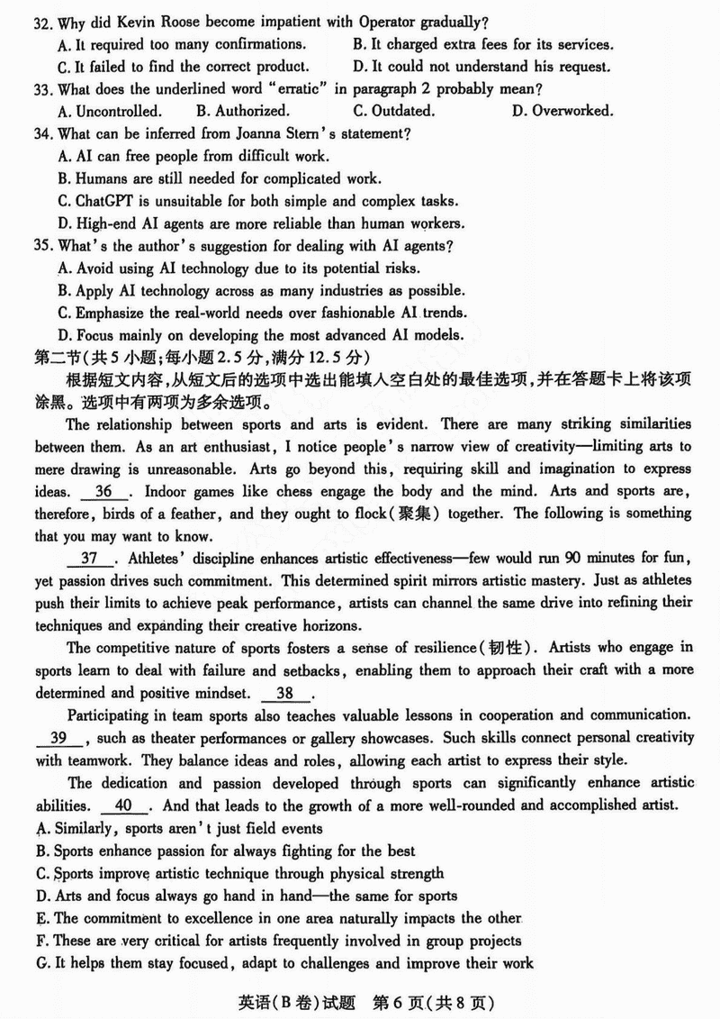 晋中三模2025年5月高考适应训练英语试题及答案 时间:2025-05-12 山西 英语试题 晋中三模2025年5月高考适应训练英语考试已于近日开考,为方便考生考后及时查看考试情况,查漏补缺、弥补不足,本文整理了试题答案解析相关信息! 汇总:晋中三模2025年5月高考适应训练考试试题及答案汇总 英语试题及答案解析