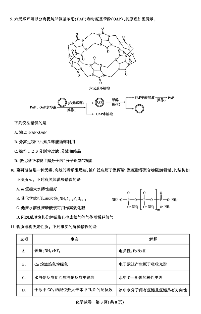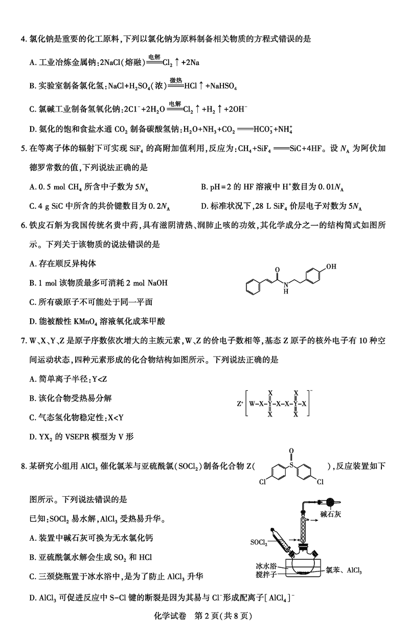 湖北圆创名校联盟2025届高三第四次联合测评化学试题及答案